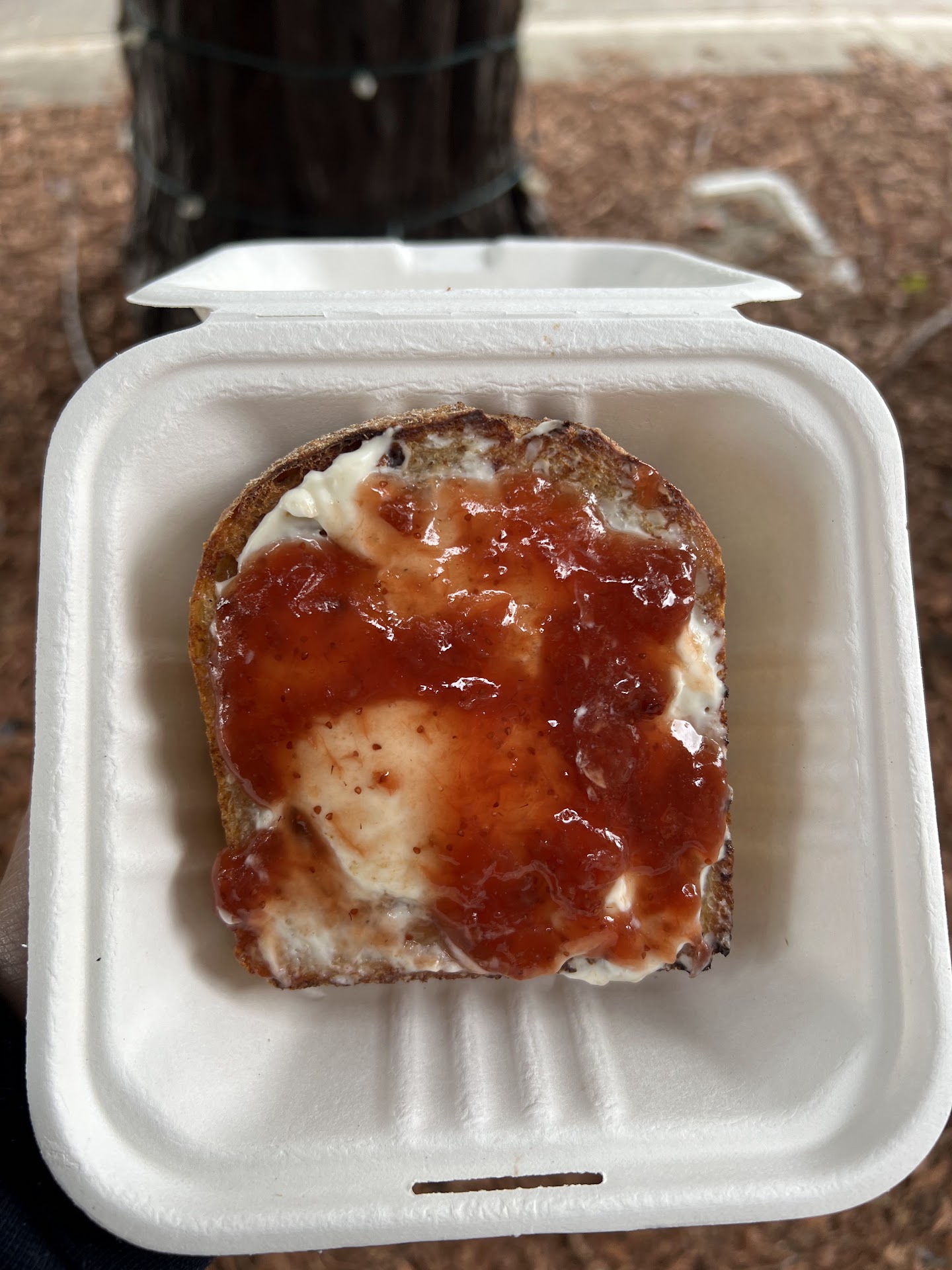 I had gotten the Fruit spread (a fancy way to say jam) and cream cheese toast on organic goguette bread. I also ordered the honey lavender latte. The latte was decent. A bit more bitter than expected, but then again that may just be my personal taste. The toast was also pretty good, but I can say overall they’re over priced for their quality.