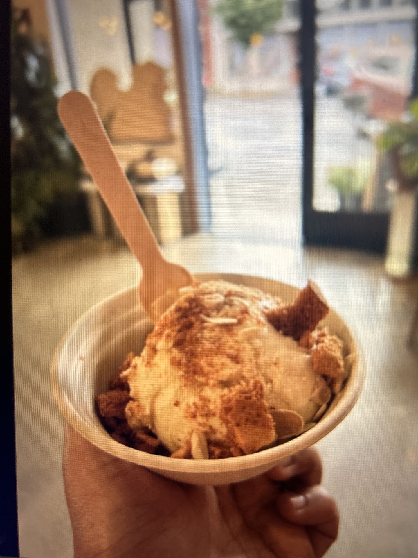 If you love decadence, upgrade your ice cream to a brown butter waffle cone for $2 or for $3 make it a sundae with topping of your choice, hot fudge or butterscotch, and housemade whipped cream.