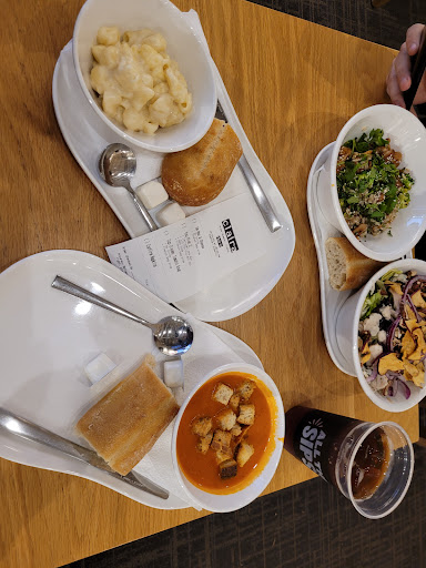 Read moreReally bad experience and won't be coming back, even though the food was mostly good. The cashier kept asking over and over to clarify what we wanted, and she still charged us wrong. (Also, no prices on the receipt?) We asked for the You Pick 2, Mac and Cheese and Tomato Soup. She charged them separately with a baguette on both. It was very odd and very expensive. The portions were incredibly small on the soup and Mac and cheese. My boyfriend got the fuji apple salad and the teriyaki broccoli bowl as a You Pick 2, both very large portions. Every table was dirty. There were dishes piled up at the trash cans. The floor was covered in crumbs. There had to be 7 employees there at least, all standing around in the kitchen and not working on the front that really needed attention. Very...