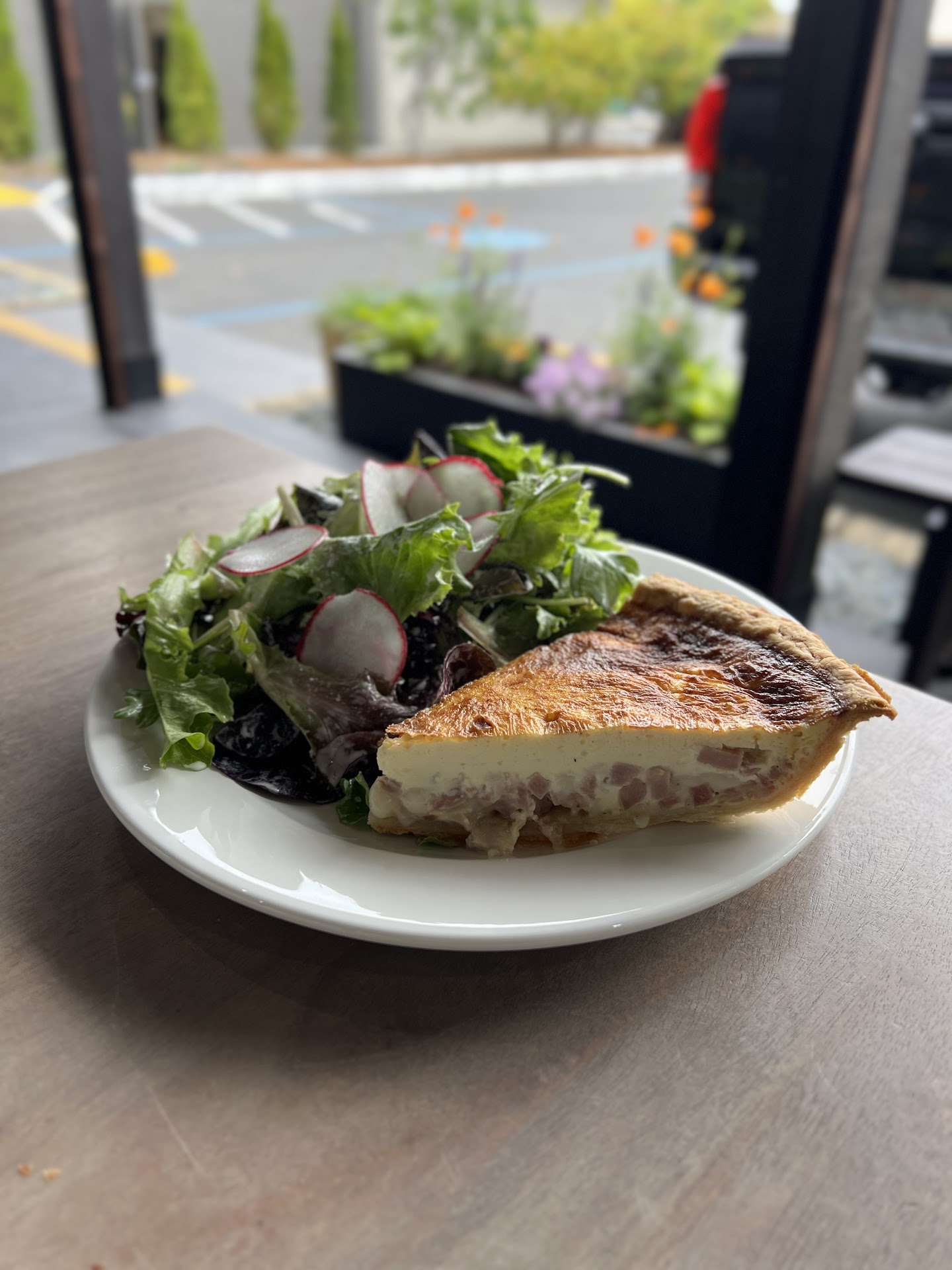 The food was hit and miss. Ordered a piece of flan, cheddar broccoli quiche, and a slice of 'breakfast cake'. The flan was nice, good flavor and a pleasant sweetness, but the crust was rather dense. The quiche was nice as well, but not much flavor. Maybe a sharper cheddar and some garlic? Not sure what the breakfast cake was supposed to be, but it was very dry. Honestly, my wife and I each had a bite and that was it. Dry enough it wasn't worth finishing.