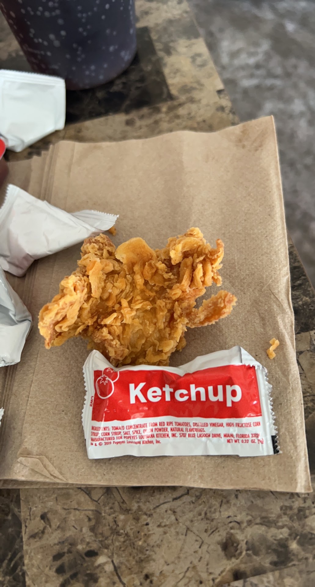 As for the food, it's Popeyes! Its tasty with reasonable nutritional value for fast food....