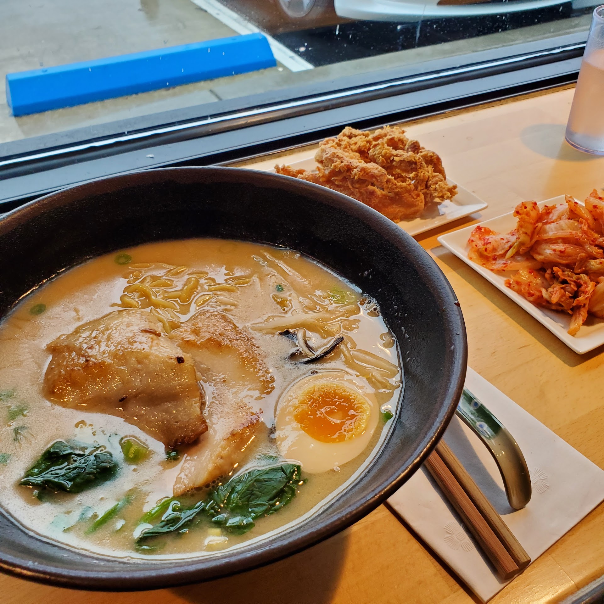 Ā Ā Ā Read moreVery good ramen shop hang-out. Love the big windows, the many white lanterns on the ceiling, the friendly and smiley ladies at the counter, the menu selections with reasonable prices. High point for steamy Ramen arrived in ceramic bowl, good portion, good toppings--choice of chasu pork, grilled or fried chicken, tofu, etc. Love Donburis too. Order and pay at the front counter, take a number, and grab your iced cold water or other drinks from the cooler, and the chop sticks (A+ for good sized wooden kind),the soup spoons, and napkins, then, take a seat. Our ramen arrived in reasonable time and piping hot. Spicy miso ramen was awesome, soup was spicy and thick, pork was tender, veggie cooked to perfection; shoyu ramen with grilled chicken breast was nice and hot, chicken breast pieces was tender and delicious. The noodle was a tad overcooked and not bouncily aldente'. Shoyu broth was a little on the bland side, as if something was wanted. Donbori with fried chicken was awesomely delicious and fresh, with perfectly cooked rice, crunchy kimchi, and cole slaw cabbage. Good locations with lots of parking. A week later, we went back to try the Raku ramen with pork belly. Also asked the counter person for aldente noodle this time. We were not disappointed. The noodle was aldente, much better texture than our first experience. The pork belly too was falling-apart-melt-in-your-mouth tender. The broth was flavorfully porky and creamily yummy. All the other components were nicely put together to add wonderful textures. We ordered the fried chicken donburi again. It was deliciously lean, and just perfect for me. Picky me tends to shy away from chunky fatty meat.