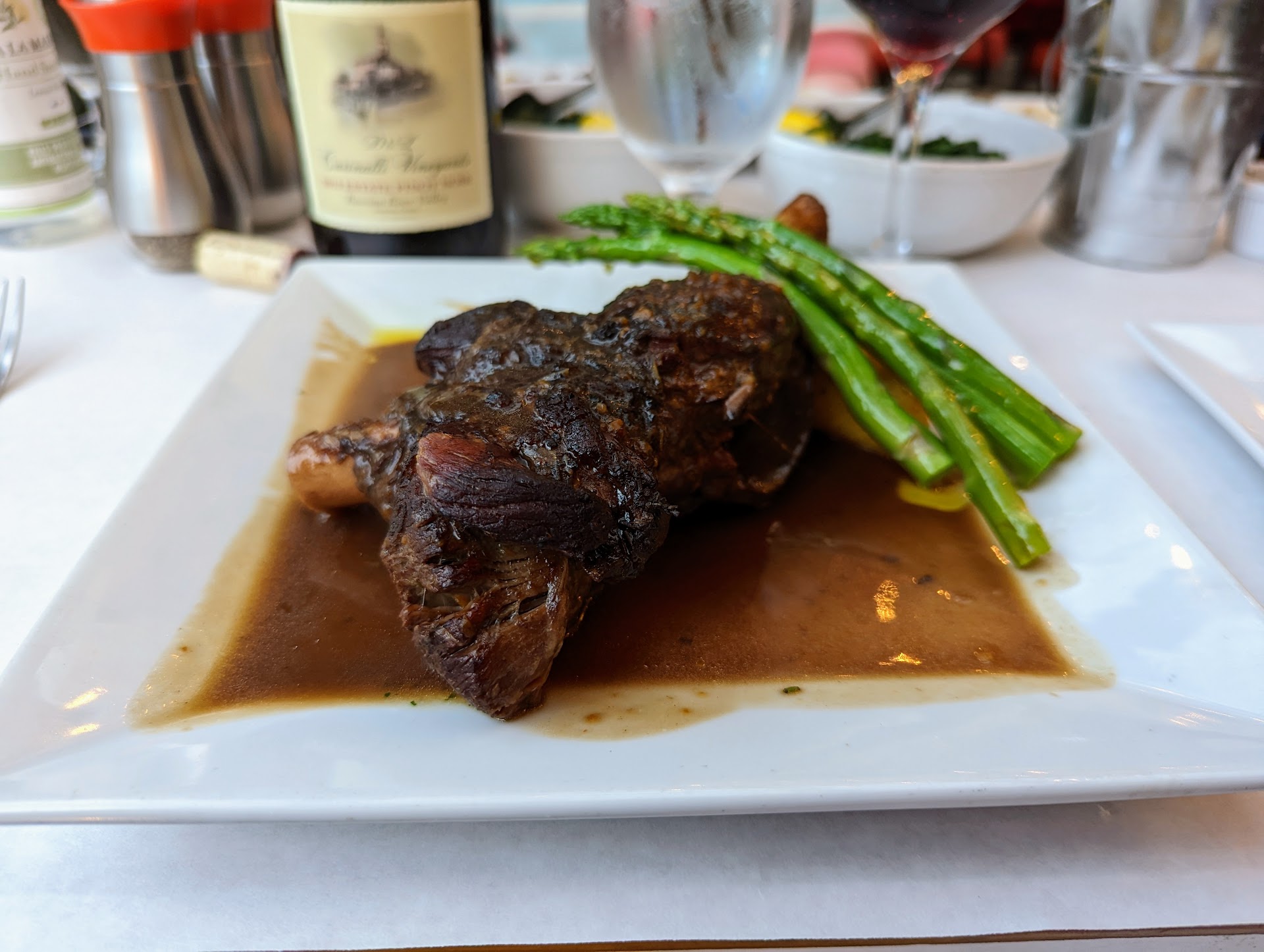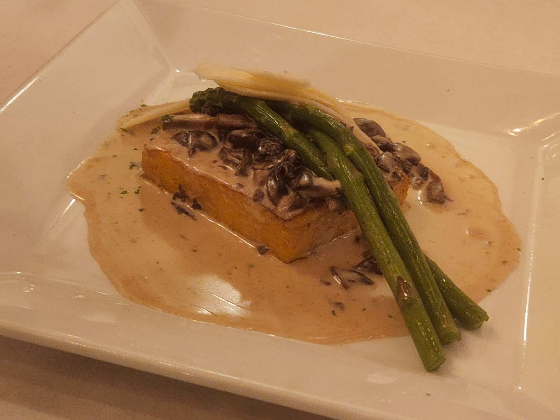 We ordered the fried calamari, which was fine, nothing special. I had a special for my main, a stuffed quail with sausage and veggies over mushroom ravioli with mushroom sauce. The dish was extravagant and delicious. Absolutely perfect. The quail was tender and juicy, served atop two large, freshly made ravioli. Super rich, buttery, and earthy. I could have eaten the raviolis and mushroom sauce for days.