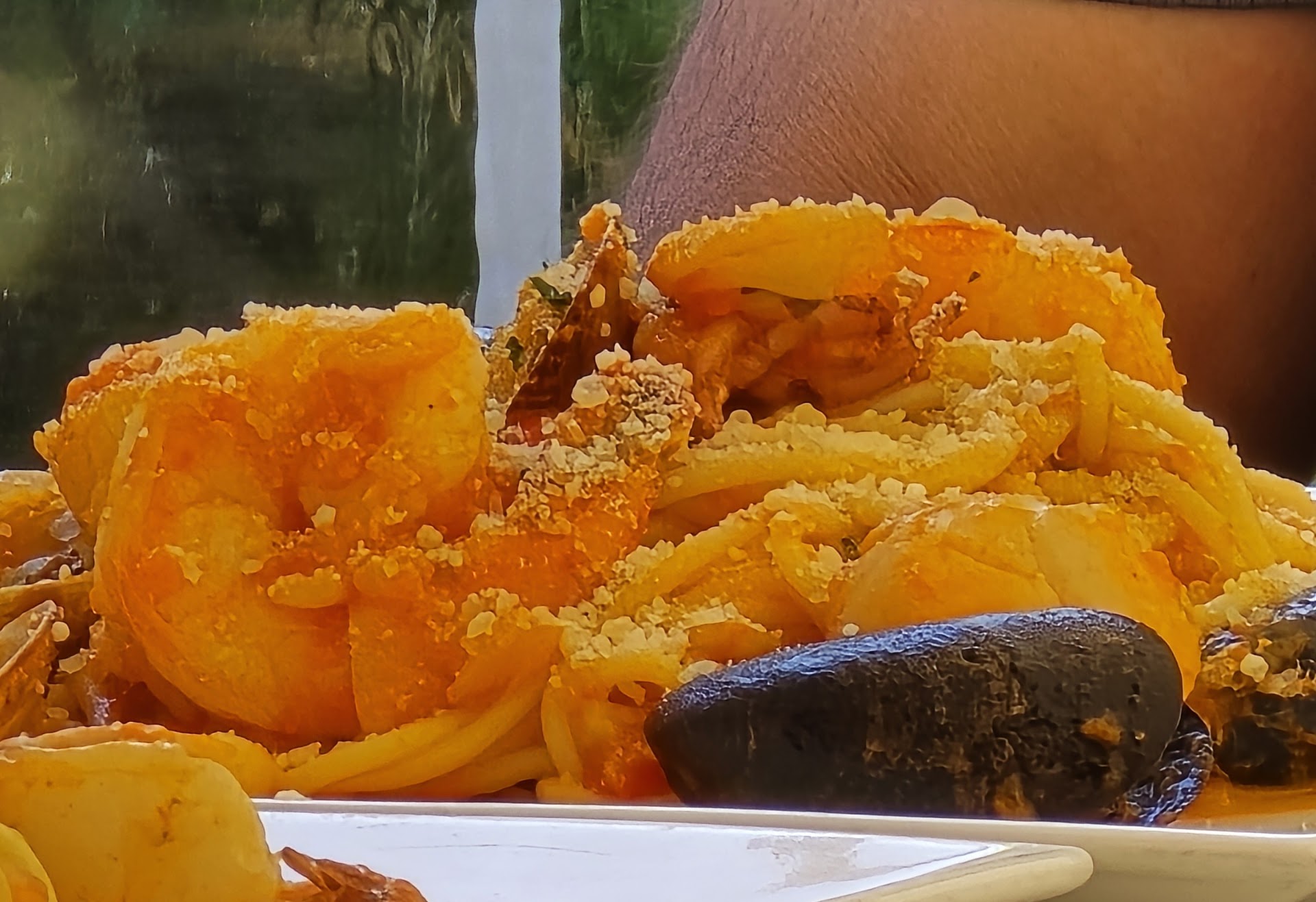 Mom had the scallop and shrimp, and said the scallops were perfectly cooked. Dad had a special of pasta with lobster, in which the lobster itself was perfect, though he didn't have much to say about the rest of the dish. The food was served very fast, though not at the detriment of the quality.
