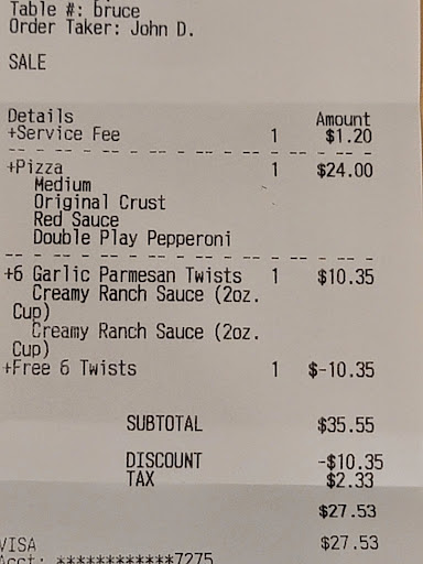 After a moment of nail-biting anticipation, the big reveal: it's a fee for the arduous task of taking my order. I must admit, I never realized the Herculean effort required to jot down pepperoni and extra cheese. Clearly, I've been underestimating the art of order-taking all this time.