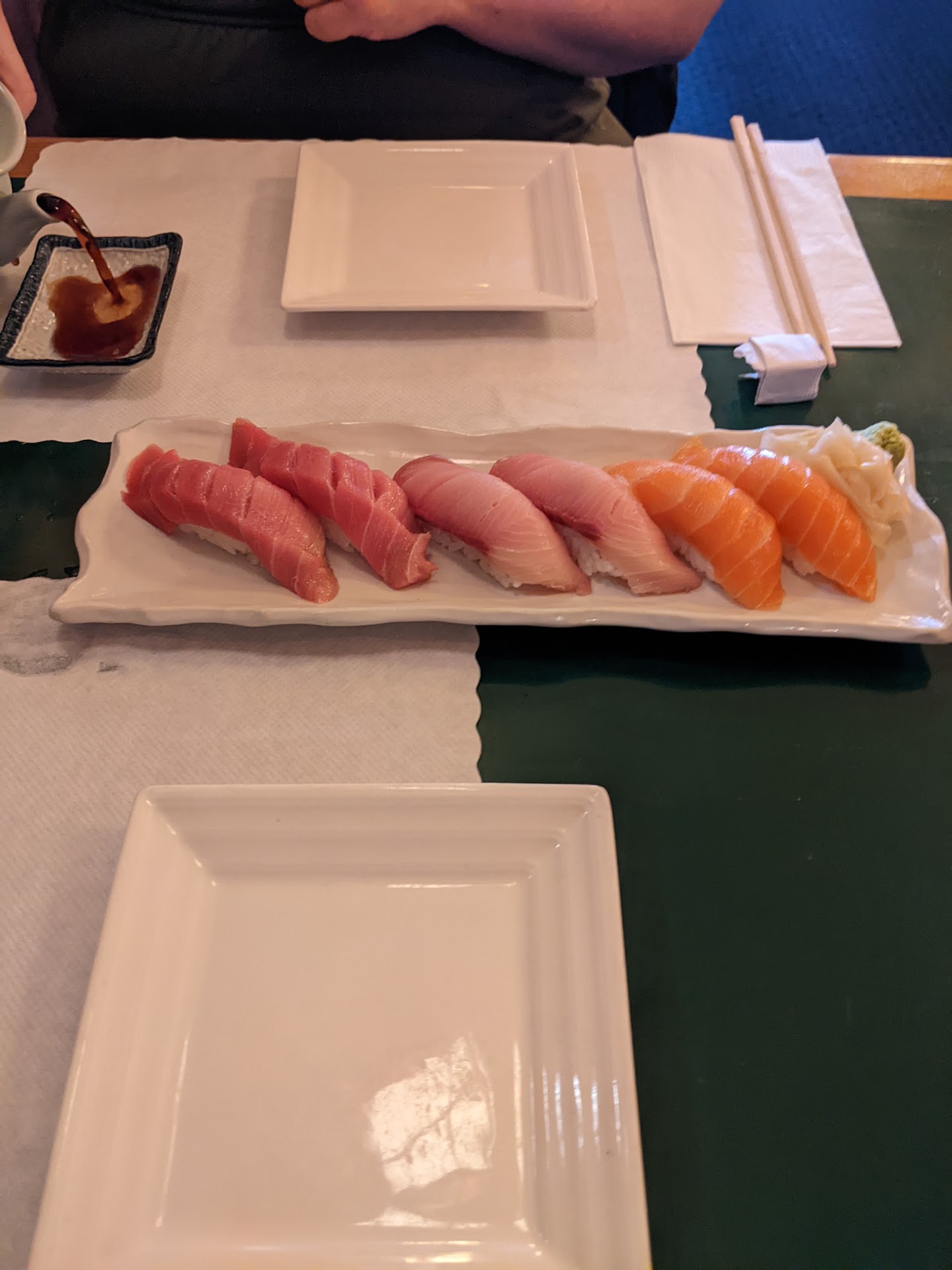 Nigiri: sake, kampachi, hamachi, escolar