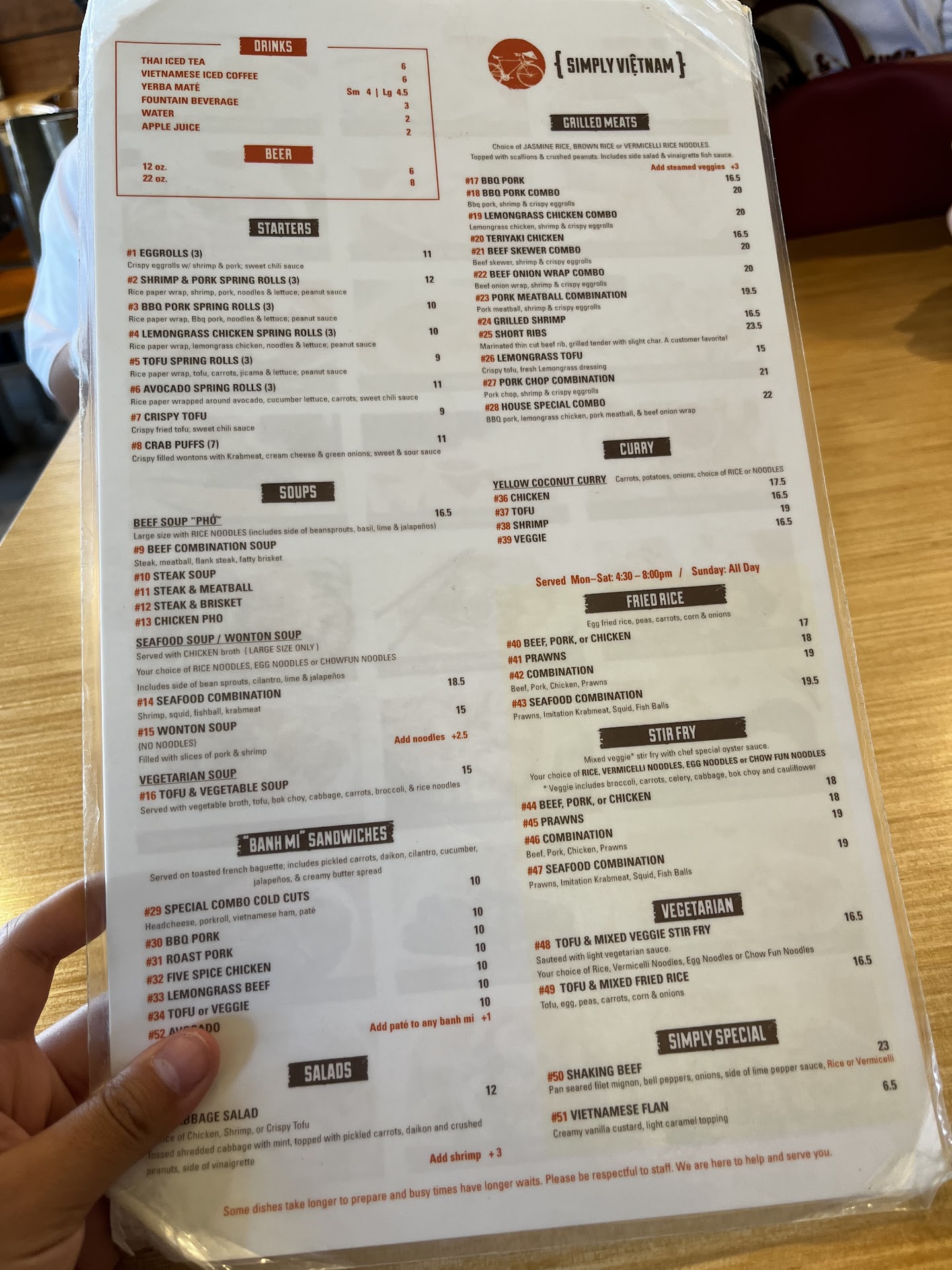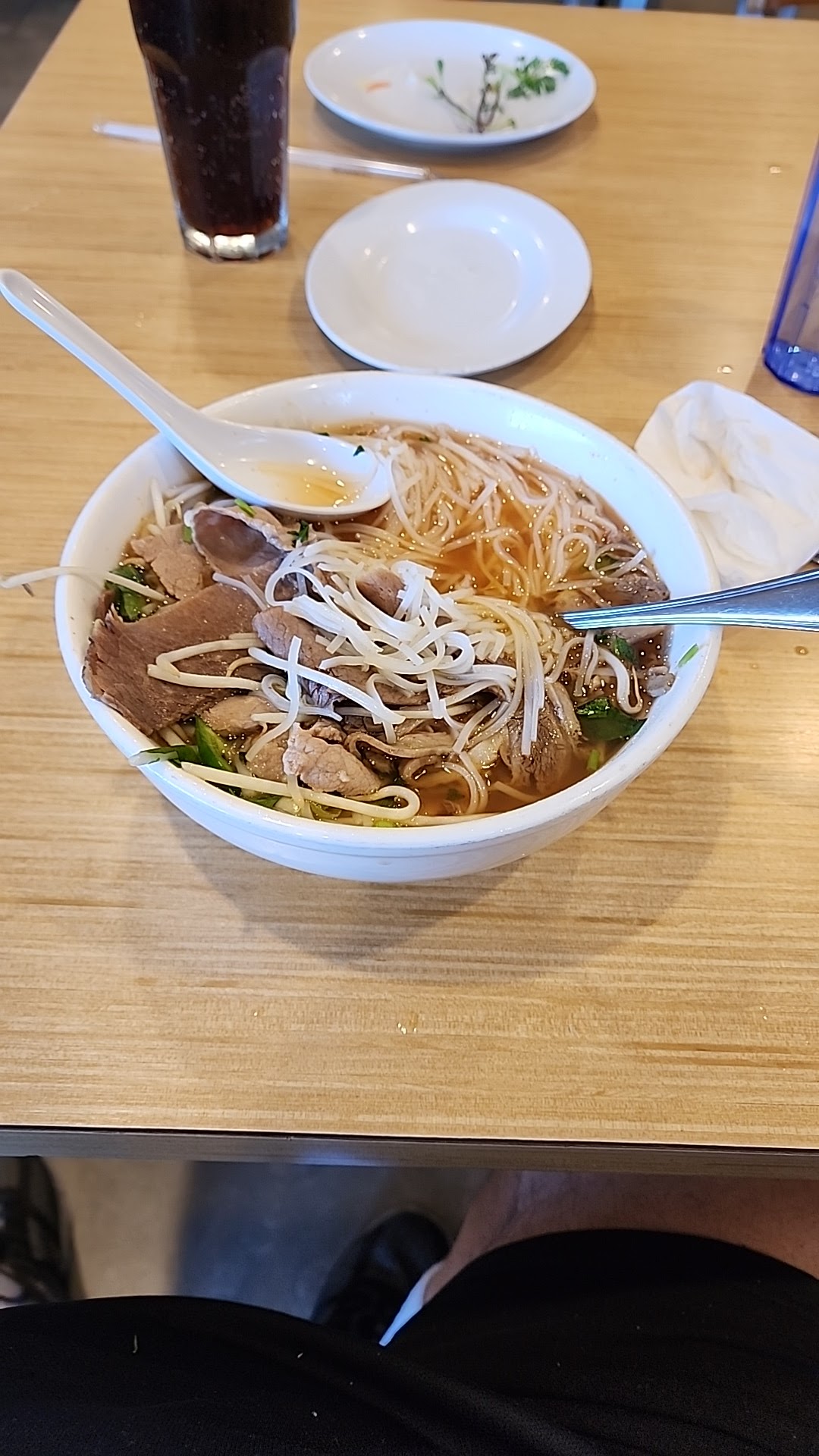 Read moreBright, lively ambiance, friendly and quick service. College crowd and families. Avocado spring roll was nice and tightly rolled unlike in many wannabe Vietnamese offerings, and the accompanying sauce was not too sweet.as.o was.agtaid it would be. (Didn't have much fish sauce in it though, for those of you might like that unique flavor.) The pho came nice and hot, with plenty of bean sprouts and cilantro - but no basil. The 3 slices of large jalapeno were a nice surprise as those peppers are often way smaller. Broth flavor was ok, but not as aromatic as I know it can be (needed a little more star anise, I think), and the meat was surprisingly tough, though cut in the right fine slices. Partner liked his stir fried veggies and tofu on rice vermicelli. He gobbled it up, but when we.got home about 2-3 hrs later, he complained the meal didn't sit well. We both loved the Vietnamese coffee - as good as any we've had elsewhere. So, we'll come back to try.again - maybe for lunch so we can drink the coffee before 2 and still be able to get a good...