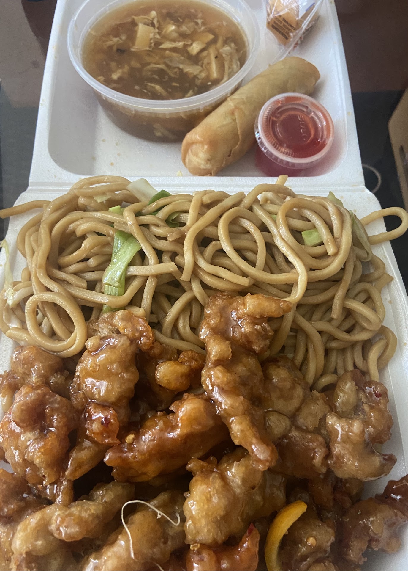I walked in, didn’t see a soul eating here. It was about an hour before they closed so thought maybe that was why. As I ordered food I turn and see one of the cooks perhaps even owner of the place, rubbing the whole top row of her teeth with her bare finger. It threw me off, made me lose my appetite and wanted to just say never mind and walk out. But I felt bad since I was already paying and decided to just try and forget what just happened and try and enjoy my food. As if that wasn’t enough, the dude at the front counter was on his phone as he was attending me smiling and giggling at his phone. After all this I retrieve my food, hit up my car and get to eating. I had ordered wor wonton soup and honey walnut shrimp. The soup was super bland even after dumping the whole packet of soy sauce. I didn’t even get halfway through before I just decided to feed the rest to my dog. As im smacking on my honey walnut shrimp I bite into a raw, mushy, undercooked prawn. I immediately spit it back out. It was the most disgusting shrimp I’ve ever had. Made me accept there and then that the toilet was going to take the damage later that night. Please I hate to say it but don’t waste your money here. Definitely not coming back. Worst first...