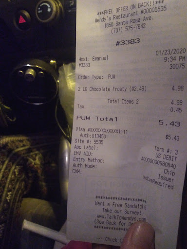 Read moreI was there probably a couple weeks ago and because it was short staff they had to close inside but there were still people inside and my five-year-old didn't understand why we had to leave! The girl that was working that night was so apologetic and hopeful when we came back a few days later not to mention grateful that she gave my 5 year old a complimentary Frosty! WHICH SHE WAS NOT OBLIGATED TO PROVIDE! AND I WAS ALREADY A RETURNING CUSTOMER SO IT WASN'T FOR THAT! I think she had just recognized my 5yr old and I,as newer neighborhood regulars,and she GENUINELY FELT HORRIBLE for HAVING to ASK us to leave! ANYWAY,.. I think this Wendy's has superb help and great food! Frequent as often as possible!! They also have a very quick drive thru! As well as nice outdoor seating with umbrellas,which my lil bit and I use constantly! And I know this is gonna sound snooty but they also have more than ONE BATHROOM,and they are VERY CLEAN! AND ROOMY FOR CHANGING KIDS AND WHATNOT!...