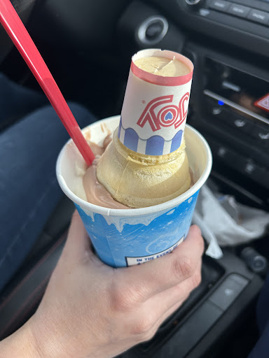As I pull forward I could see thru the window, the lady with the headset making a very large ice cream cone for the car behind me. 🤔