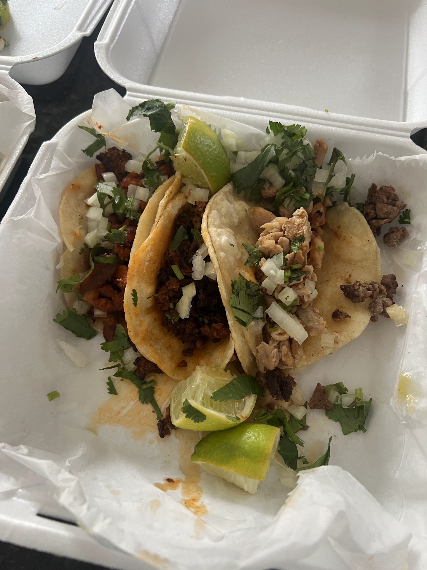Ā Ā Ā Read moreMy husband grabbed some food on the way home from getting a haircut next door, and everything he got was AMAZING!!! He got us some street tacos with a different meat in each one, and the Al Pastor and Carne Asada were my favorite! I think itās the best Al Pastor that Iāve ever had! š We also got a chicken quesadilla (which my kid said was super good) and some horchata! Iāve had a lot of horchata in my life and it was unique in a really good way - I loved it and might have to go back regularly just to get some š We will absolutely be back and recommend it...