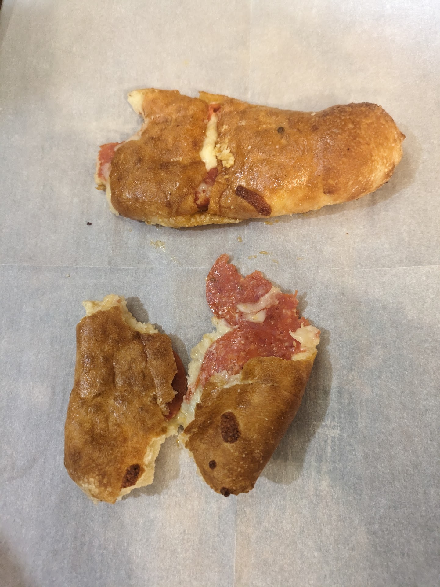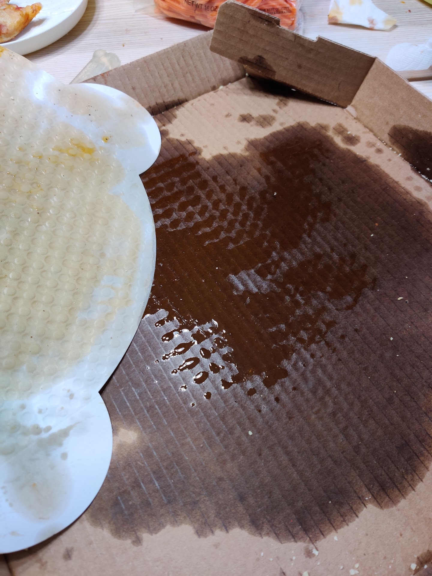 Here is my breakdown: Pepperoni Pizza (AKA Grease City™) It soaked the crust, drenched the box, and left a puddle on our dining room table. The pepperoni that curled up were like little cups you could drink grease from. The pepperoni tastes like uncured salami. It's sour or tart, almost like they tried to pickle it. Very off-putting, especially if you eat it with their ranch. It's also very overly salty, but unfortunately that's not uncommon with delivery pizza. The crust was spongy. This could've been due to the grease. The crust flavoring didn't work well with the rest of the pizza. Got the sick fast food feeling in my stomach after one slice. Greek Salad was acidic, but it worked much better here than it did in the pizza. Still felt oddly greasy due to the vinaigrette. It's... fine. Was probably the best part of our meal. I liked the cheese pizza a lot more than the pepperoni, which is something I've never said before in my life. That said, it suffered some of the same problems.