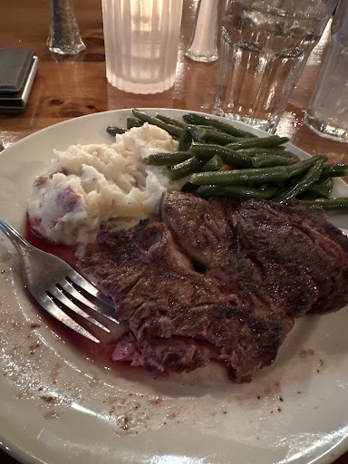 Food was salty, overcooked, bland, and mostly tasted frozen instead of fresh. I ordered a medium rare top sirloin steak, it came out well done. I mentioned it to the server (named Austin, who was very prompt and cordial) and he took it, apologized and returned with one cooked rare (still not medium rare). I didn't send it back again, although I considered it. For a rare steak it was tender but the taste was somehow lacking. Not juicy. It seemed simultaneously unseasoned yet too salty. Same with the rare filet mignon. I would not be surprised if the steaks were frozen. Spinach casserole tasted like microwaved lean cuisine. The breading on top of the casserole was chewy and soaked in grease. Baked sweet potato was very sweet from a glaze, and not fresh tasting. Steamed vegetables were cooked beyond all recognition - mushy, lifeless, salty. Not crispy or fresh tasting. Boneless bbq pork ribs "special" was indistinguishable from that of any corner pub selling frozen, reheated food. French fries were hot and crispy but tasted frozen, like any battered fries at any chain like Chili's. Atmosphere is dim, dingy, stodgy, dated. Schmaltzy piano music playing over the house speakers. The room, although large and boasting high ceilings, was so dark and stuffy that it felt like being trapped in an airless closet. Closest comparison for decor is the haunted house ride at Disney World. Thick vinyl tablecloth did not match the formality seen elsewhere. In fact nothing really matched. Floral curtains looked like grandma's house. Service was totally fine, although they were evidently forced to wear bow ties. With sneakers. It made for a dated, uptight and pretentious, yet shabby costume. Prices were far in excess of the quality of the food. Most entrees cost above $20 with some well above $30. For those prices I would have expected food that was better than your average truck stop buffet. Outrageous. The specials list was laminated and printed very nicely, suggesting perhaps that the specials never actually change. Lazy kitchen and management. This place could have potential but I will not return unless there are...