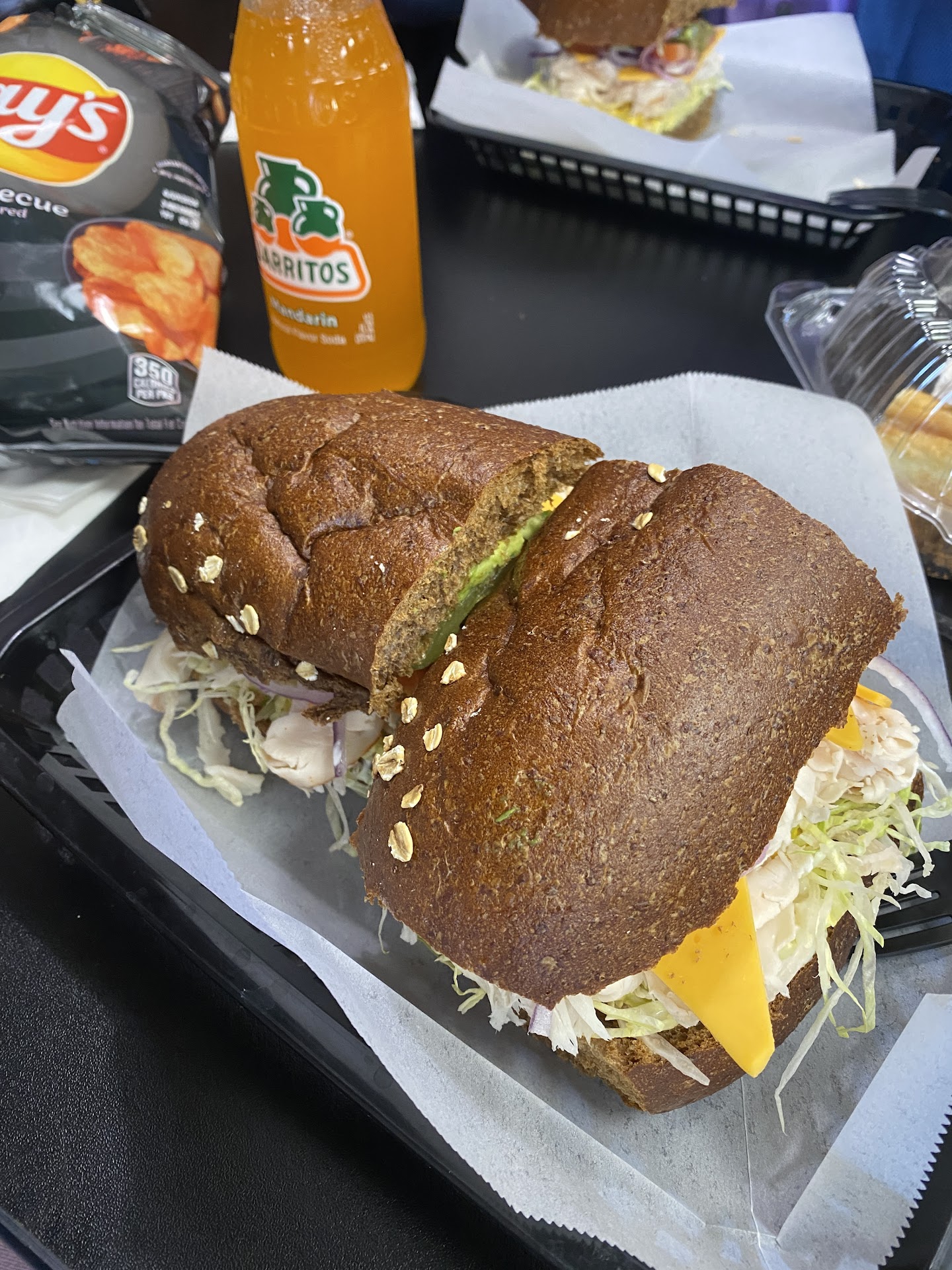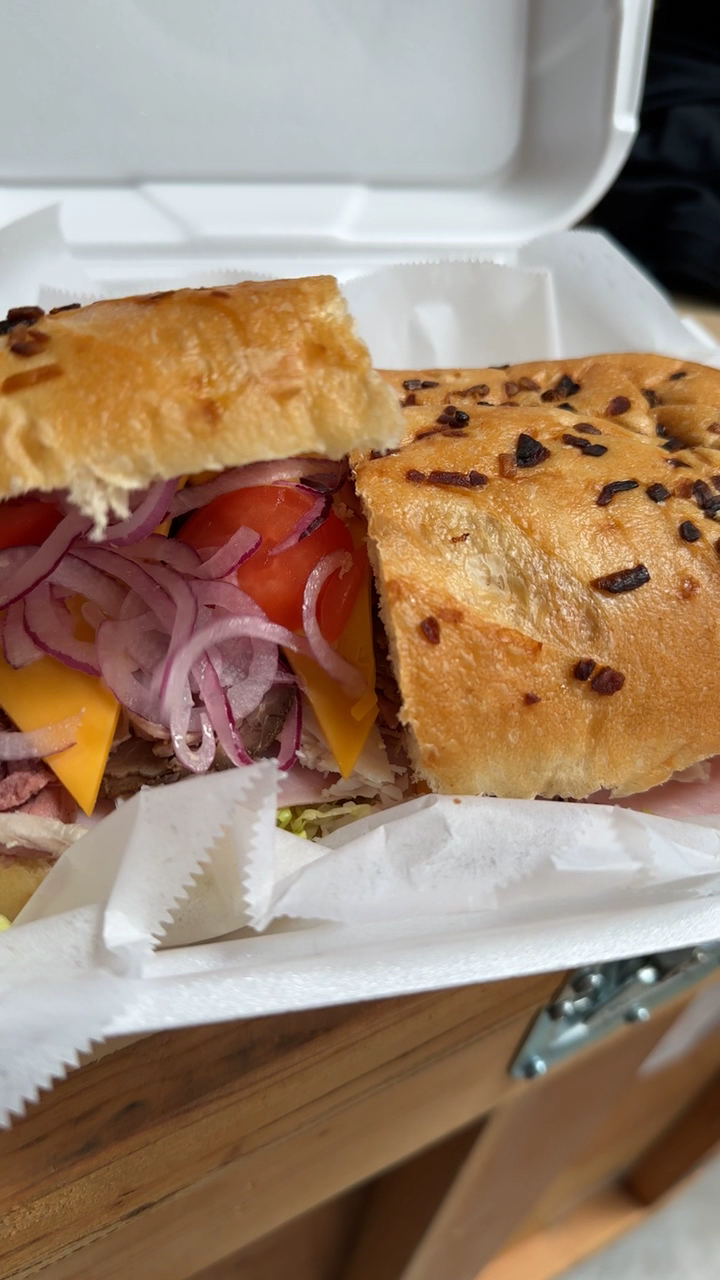 Nothing like the first bite of a fresh crunchy deli sandwich. We ate half since they're huge and delicious and finished the other half for dinner. They're delicious I told my husband we're going back next weekend!