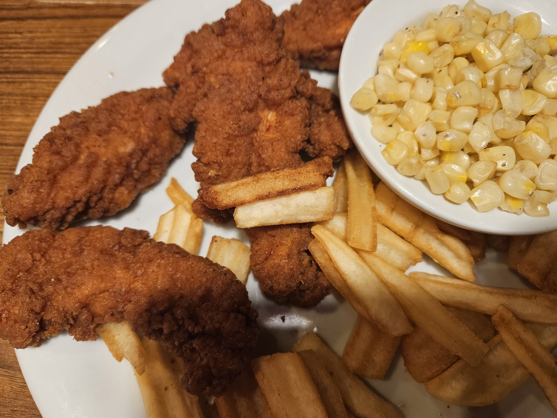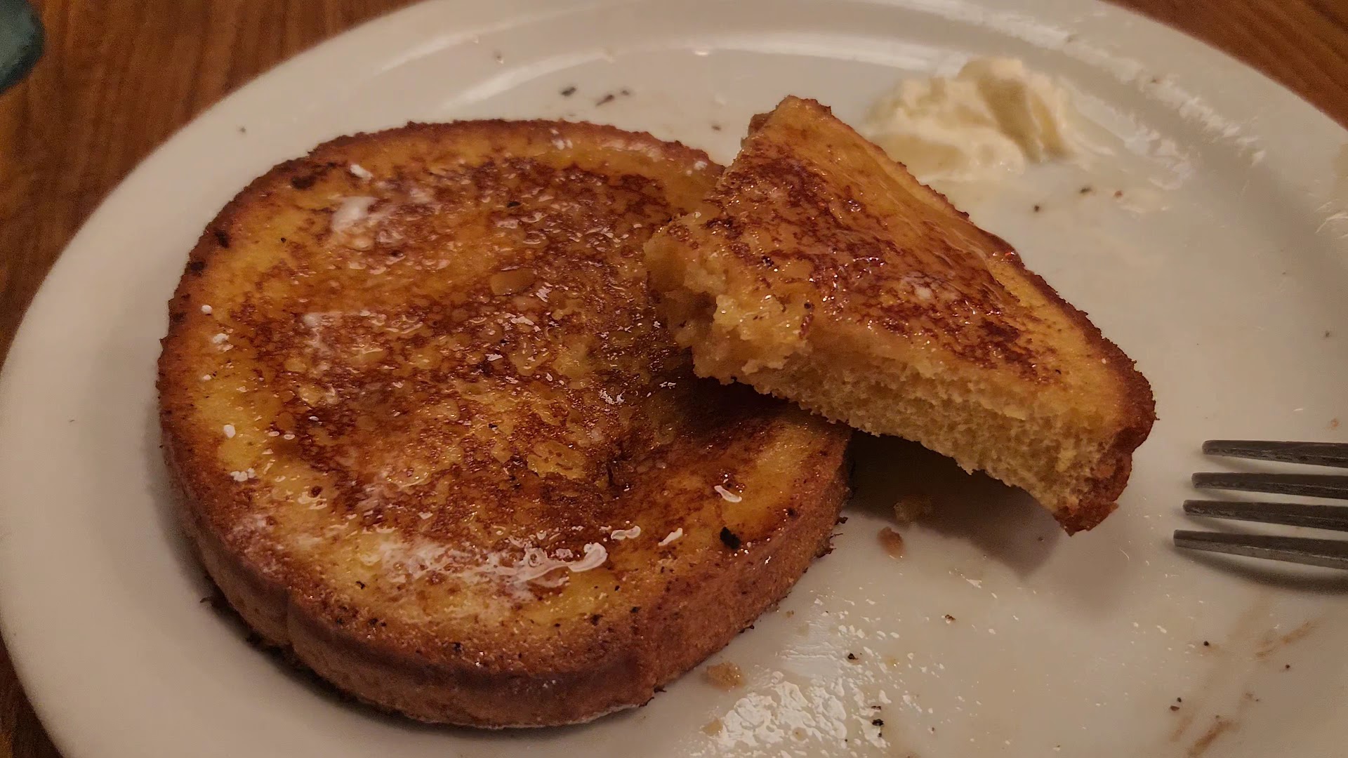 Moving to food... I'm sorry, it's not good news if you like Patty Melts or chicken tenders... I realized a long time ago that my favorite food from Denny's is their patty melt without onions. If you're a true fan, or cook, you know that a patty melt is a burger on rye, with grilled onions and Swiss... Our server took our orders, and I didn't even look at the menu, I knew what I wanted.. "I would like a patty melt with no onions please..." She repeated my request perfectly and wrote it down. 20 minutes later she passed our table and said, "your order is almost ready." Our group was celebrating a birthday and catching up with a family member whom we haven't seen in two years, and by the time our food came out, excitement and conversation had died down a lot... That took awhile for 5 of us! The restaurant wasn't that busy, remember, it seemed like a desert crowd. Everyone else got their food first... Salmon and rice, grilled cheese sammich and fries, French toast with eggs and sausage, blueberry hush puppies.... Everyone started eating, and my plate came about 5 minutes later! It wasn't a patty melt! It was something like a basic lettuce & tomato cheeseburger on white bread! WTH?! Sometimes I don't have a filter... I looked at it like a suspicious 2 year old and said, "eww! What's that?!" Our wonderful, sweet, patient server, Ana, said, "Oh, I'm sorry, we don't have patty melts anymore..." Well! That's disappointing! So I reluctantly looked at the menu and decided on chicken tenders... Our sister had French toast and she was wanting warm syrup to drizzle over it. I asked Ana if we could get some warm syrup and she gave me a look like she was about to deliver bad news... "Oh I'm sorry," she said, "We can't do that anymore..." WHAT? "You can't warm up a little syrup for her breakfast toast?" She told me that ever since the PANDEMIC they can't do that anymore... My lack of filter.... "Why? Do you have to breathe on it or sit on it to warm it up?" It didn't make sense to me, and she said that she would ask if they could. The answer was no... Warm syrup... Pandemic... ? Is this Denny's? Oh look! Chicken tenders! And they're hot! And I even got a spoonful of ranch dressing with them... I'll try not to waste any! By the time we left Benny's I had bubble guts from the chicken! I couldn't get home fast enough! A Patty Melt at Denny's wouldn't have caused that! As far as the rest of the food, I believe everyone enjoyed their meal, and I didn't hear of any other bubble gut issues.
