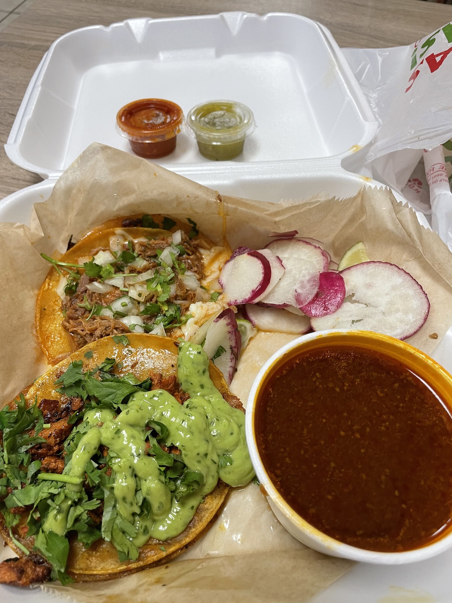 All that said, I was super disappointed as soon as I opened the container. I expected at least my birria quesa taco to be made the traditional way I've had it since moving to SD; Crispy on the outside with that amazing melty cheese inside. Instead, I was faced with two incredibly soggy tacos. As soon as I picked them up, they started falling apart. (Mind you, I ate them RIGHT after they came out the kitchen so I can only imagine how sloppy these are if you DoorDash or carry-out.) I dipped both in the consome, which had good flavor without being spicy (I think they let the chili oil hot sauce do the trick for those wanting to spice it up).