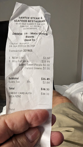 Ā Ā Ā Read moreI have been here 3 times in the past two weeks and my experience has been nothing short of amazing every time. Jada is one of the best hostesses I have ever encountered and Edgar is one of the best servers I have ever been served by. The service is only outdone by the quality of the food here. I live in Fayetteville NC and have never had as good a steak in all of NC. I got the NY strip all three times I ate here and could not cook it better myself. They cook over pecan wood and it is absolutely amazing. The sides are every bit as good as the steak as well. The red rice and Mac and cheese are my favorites. Do yourself a favor and pay no attention to the low reviews on this restaurant. We ate at several of the restaurants in Santee with much higher reviews and none came close to this restaurant. This place should be a 4.8 to 4.9 minimum Google rating and a 5 in my opinion. The prices are amazing as well. The NY strip was 25 dollars. That's with two sides. I pay 16 for the ones I buy uncooked at my local butcher. The Prime rib is 27 or 28 dollars. There was no wait at all. Even the owner was at the bar the second night we went and he was very personable as well. I made a point to tell him how impressed I was with his restaurant and employees and how I could not fathom how he did it at the low prices he charged. The only reason we did not eat here 5 times instead of three was that they were not open on Mondays and Tuesdays.