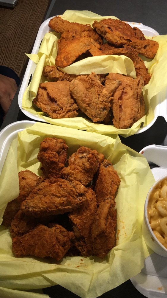 When I noticed this fried chicken restaurant opened I knew I had to visit. Fried chicken is one of my all time favorite foods. I decided to come in for lunch and grab a 3 piece dark meat combo. I love thighs more than drumsticks so I asked if it could come with 2 thighs and 1 drumstick. The very nice gentlemen told me I could have it however I wanted. That was so awesome! I was told my order would take about 15 minutes, I don't mind waiting for a freshly cooked meal. My order was ready about 15 minutes later. I took my order to go since my son was with me and he wanted something else to eat. So, I ate while I drove. This chicken was so hot, I willingly burnt my fingers to dig in. The chicken was very juicy and very crunchy, i loved the coating but to me, it was lacking flavor. I would love a spicy option. For my two sides I chose hush puppies and onion rings. The hush puppies were good. Nothing special but tasty. The onion rings made me consider giving this restaurant 3 stars. They are not freshly made and taste mostly of breading season with onion powder. There was no real onion in these things. This bummed me out, since onions are cheap and you can get a lot of onion rings from one onion. They already made the batter, it wouldn't be much more effort to make a good onion ring. I would visit again but would ask for some of the wings seasoning on my chicken and definitely not order the onion rings.