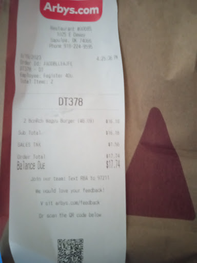 Read moreThe young man at the counter was excellent! He was on his toes, apparently doing everybody else's job. I ordered potato cakes (yea! Their back), and a super roast beef without tomatoes, I'm totally allergic -- like anaphylactic allergic!! So I got my order, UGH, curly fries! Well, the potato cakes are still cooking. Is that REALLY an excuse? Why did I get curly fries to begin with? So, by the time I got the potato cakes, my sandwich was cold. The poor young man, was going to get me a FREE COOKIE; however, the smart allek cooks in the back insisted he pay for it. I REFUSED the cookie. Left with my food. Started on my way to work, eating my food in my automobile. BAM, a tomato on my super roast beef sandwich. Half way to Tulsa! Couldn't go back, because I would be late for work. It was the smart allek cooks who...