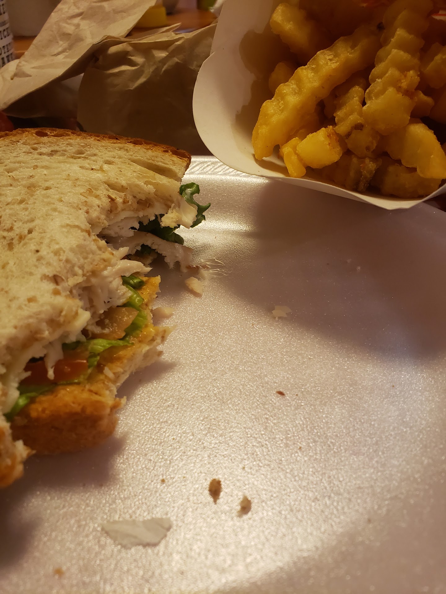 Read moreI got the Turkey and swiss sandwich and added bacon quess what? That's right no bacon! Only half the sandwich had a little Turkey the rest was lots of wilted lettuce there was only a quarter piece of tomato and one sliver of onion this sandwich comes with brown spicey mustard I asked to not have it on mine quess what? That's right it was caked on there was more mustard than Turkey and swiss cheese! I ordered jalapeno poppers with cream cheese one had no jalapeno and one had no cream cheese and one was a chicken nugget! The biggest disappointment was when they said they no longer have...