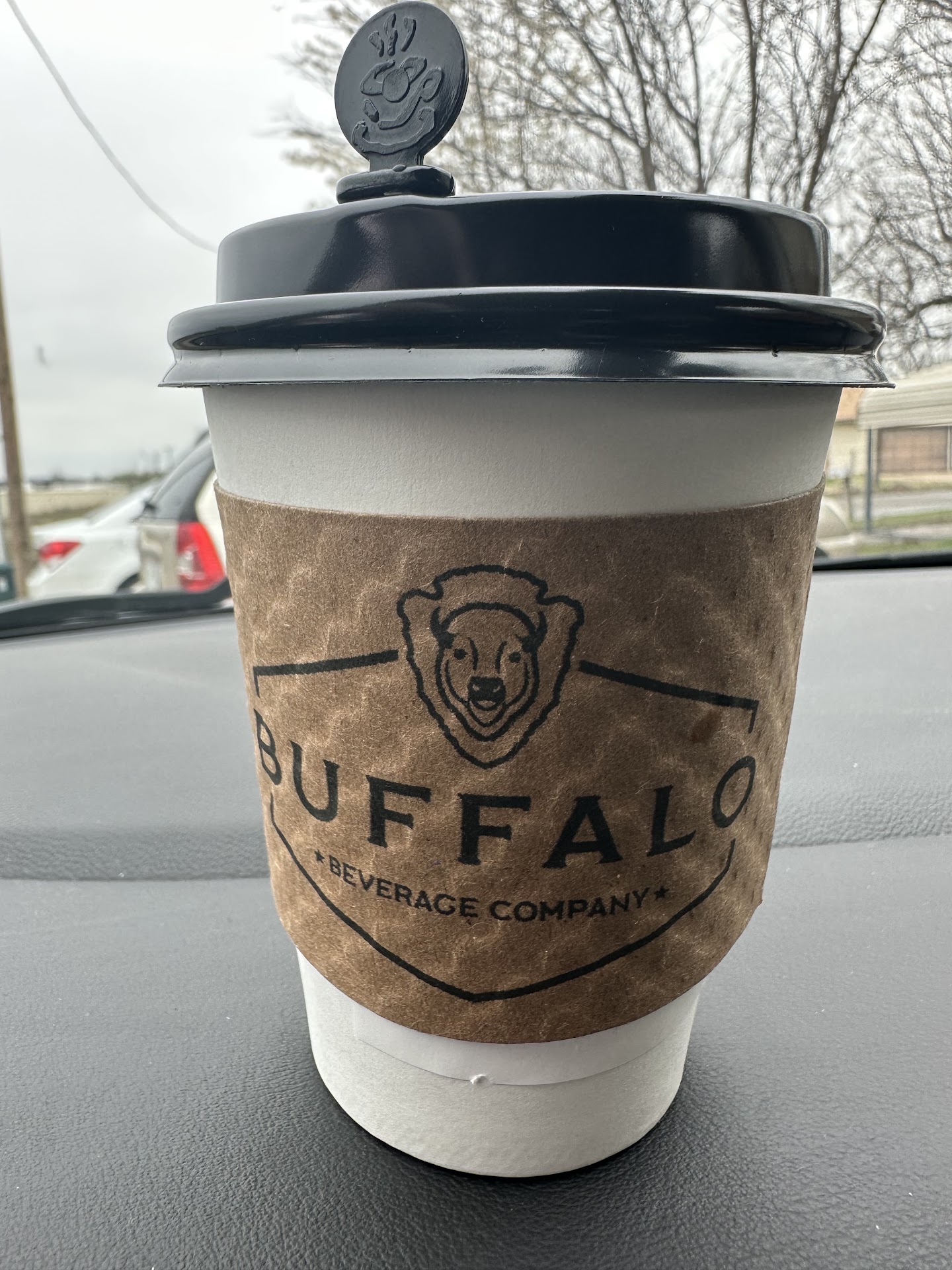 Read moreHad to take some friends to the airport early this morning. Was going to go to Quik-Trip for a cup of coffee, my go to place for coffee. As I was heading there I saw the Buffalo Beverage company and decided to stop there. Drive-thru meant I didn't have to get out of my car. All I needed was a regular cup of coffee. Black. You'd be surprised how difficult it is to just get a decent cup of regular coffee. Anyway, I ordered my coffee and the service was fast, friendly, & efficient. Didn't cost an arm & a leg. Damn good cup of coffee. If I lived in Sapulpa, I would go there often. I only drink regular black coffee, but they obviously had 1000 different offerings of coffee & tea....