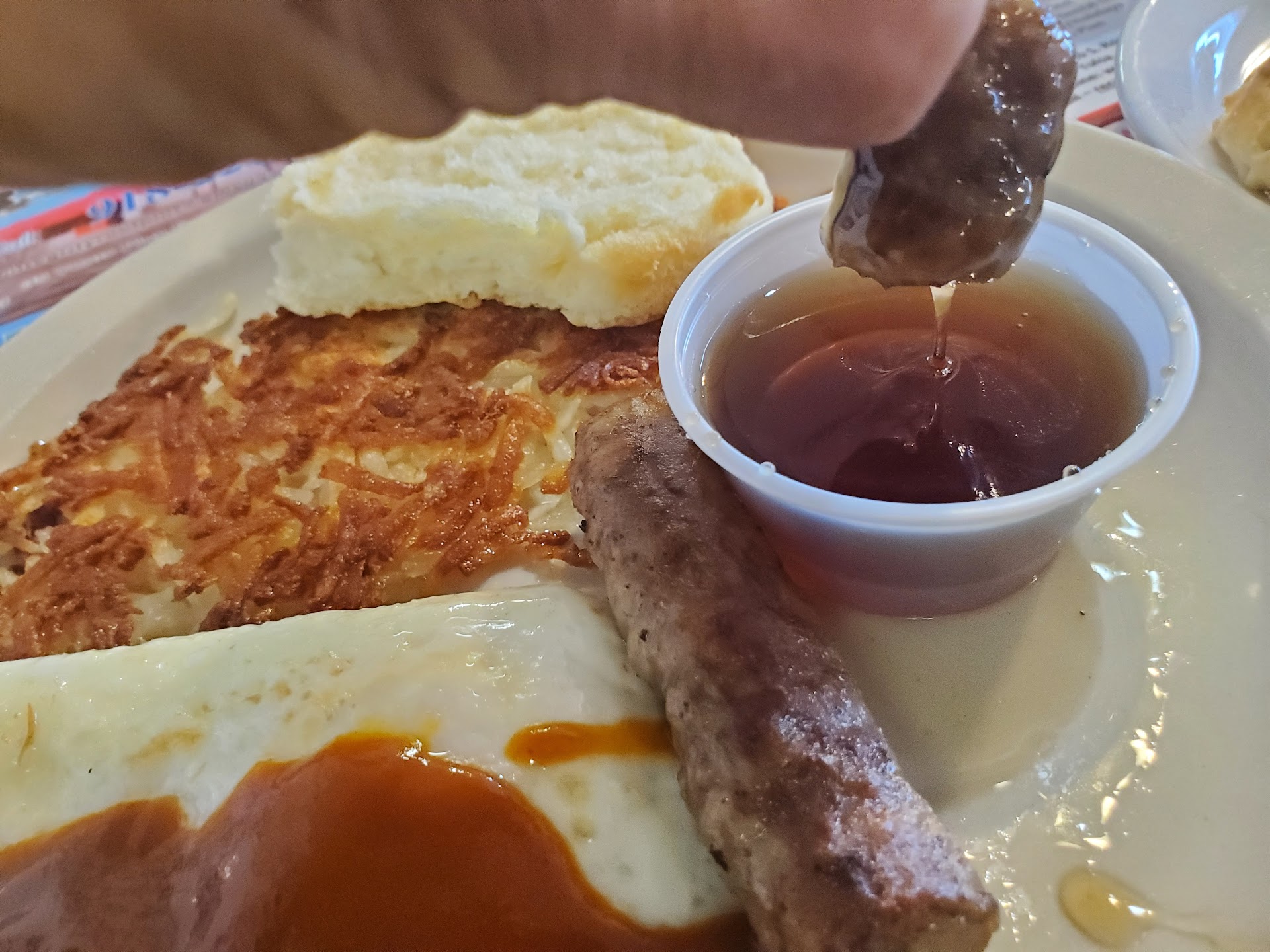 Read more10 minutes after ordering, they come back to our table to tell us the waffle maker was turned off and it's going to take longer to cook my wife's waffle, even though my food is already ready. They offered to make her pancakes instead. We still waited another 10 minutes for the food to arrive to our table. As soon as she put my plate down, I could see that it had been sitting under the heat lamp the whole time. My over medium eggs were now completely cooked through, the potatoes were dried out and the cheese was a big blob of hardness on top. They took my plate away and came back 5 minutes later apologizing about the waffle maker issue again and that they would take my food off of the ticket. They then offered to remake my plate. They brought it out and again, the eggs were over cooked. I don't know if the cook doesn't know how to cook eggs but the yellows should be runny in over medium eggs, not hard. The toast was soggy with all the butter they put on it and the bacon and sausage were room temp at best. I will not...