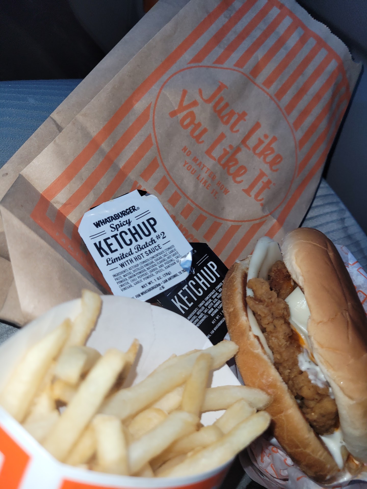 Read moreOoooo where to start. We decided to make a mobile order (Mistake #1). My wife and I had been out for a date night and figured Whataburger would be the perfect night cap. On the app it says it will be ready to be picked up at 1:12am-1:14am(Yes, it was late).Anyway, I pull up in line around 1:20am, which admittedly was my fault...initially. The app made us choose drive-thru even though they have designated curbside pick up spaces. I am sitting in line for 15 minutes and the line is at the same spot..ok its Whataburger but getting a little irritated. Then the manager comes out to a truck where a man PASSED OUT in line 🤔 for lord knows how long. Finally dude leaves followed a few minutes later by 2 police officers. Finally it goes and i get my food at 2:20am.... I pull out my food and there were no fries and it was obviously cooked when we ordered it at 1:12 so I go back around and knock on window because my order isn't complete or fresh. I tell the manager and he does remake my food which is why i gave 2 stars instead of 1. However I get home and the burger was made wrong. Terrible experience,...