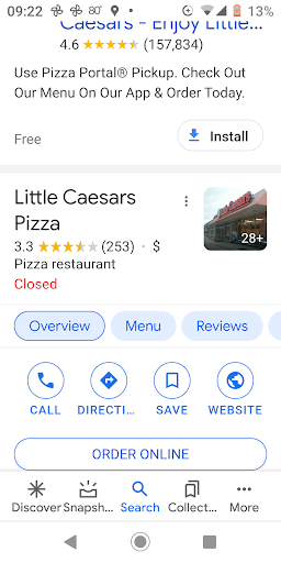 (pics are screen shots of different LC sites with star ratings and other web info! The highest rating, not pictured, is the app rating, which is 4.6, this is just rating the app!! Not the restaurant in any form or fashion! FACTS!!) I ordered online 30 minutes before closing. Arrived at 5-10 minutes before closing. Drove past the pick up window because it appeared to have a 2nd window ahead of it and there was no one at this window anyway. Saw a vehicle in front of me which appeared to be waiting at a window. There was no 2nd window. The angle of the car was deceiving but it was running with someone in it. I passed it and saw there was no way out but to go into a parking lot behind them and turn around, so I did and parked near the window. Knocked 3 seperate times, no response. Went to the front door, where I saw the cashier sitting and playing with her phone. Got her attention, she appeared to be going to the window but when I walked back around she was not there. Saw a sliver of her sitting in the same place! Knocked on the window again! Manager peeks out from the kitchen and signals 1 minute with her finger. Comes to the window asked could she help me. Told her I had an order, she said they didn't have any orders. I asked if this was 324, whatever the address # was, then said I got an email confirmation. Showed it to her, she looked and said, "Let me see what I've got!" She had already asked the cashier if she had an order, she says no. Brings me a pizza and bread sticks from the warmer. Didn't order bread! Asked what it was, told me, looked at the order again, took the bread back, and brought my other pizza out! Didn't have my order but happened to have the exact 2 pizzas I ordered, 5 minutes before closing, sitting in the warmer!?!? What are the odds!?! So needless to say, they weren't the freshest I've had. Didn't appreciate the sour, disappointed looking attitude I received (probably because I showed up to actually get the food I pre paid for!!), the game playing by hiding and hoping I'd just go away, it was night time with very poorly lit back area to turn around so you could exit, didn't appear very clean anywhere outside!! Just not the best, friendliest experience I've ever had! Don't think I'll be going back there at all... Maybe for some day time pics. Just didn't have that very "happy" feeling you usually have when you're picking up food!! Put this review off for a week and 3 days so I wouldn't sound too harsh and angry!! (BTW, it seems I'm not the only 1 who noticed the lack of good customer service! How are they staying open at this location!?!?) Come to think about it, I didn't hardly smell fresh, hot, steamy pizza the whole way home... as it sat on the seat right next to me! Actually have 3 stars up there, I need to drop a couple now that I've typed all this out and kinda relived this aweful experience! Sorry it's so long but I felt a little detail was necessary in this instance!! Thanks for...