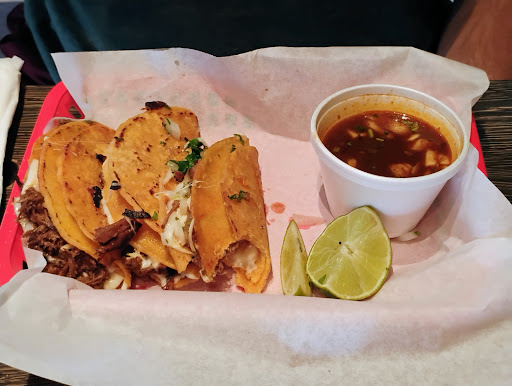 Read moreDecided to check this place out for lunch. Weird parking arrangement, thought we were in the pawn shop parking. Cool building, looked clean. Was pleasantly surprised that happy hour was during lunch and margaritas were $3, told our server I planned on having several! My SO got berria tacos and said they were great. He also ordered Modelo, no lime. Vegetarian options were very limited so I ordered the lunch item.if a taco and burrito and asked that it be made with lettuce, tomato, onion, guac, and cheese. It comes with rice and beans. She wrote all this down but must have lost it on the way up.hhe kitchen. The Modelo had a lime. Yes, you can throw it out but if you don't like the taste of limes, it's already in the bottle. I literally had to ask if this was a burrito (see pic). It was the smallest burrito I've seen in my life. And it was sparsely filled with some kind of sauteed vegetables. The taco was closer to what I ordered but there was no cheese anywhere. Our server would make a great housekeeper - we had to interrupt her cleaning to flag her down for our drinks; I had two but we would have been there til dinner if we wanted more. Bottom line: Adequate but not huge portions; slow and inattentive service; don't deviate from the menu; and don't bother if you're...