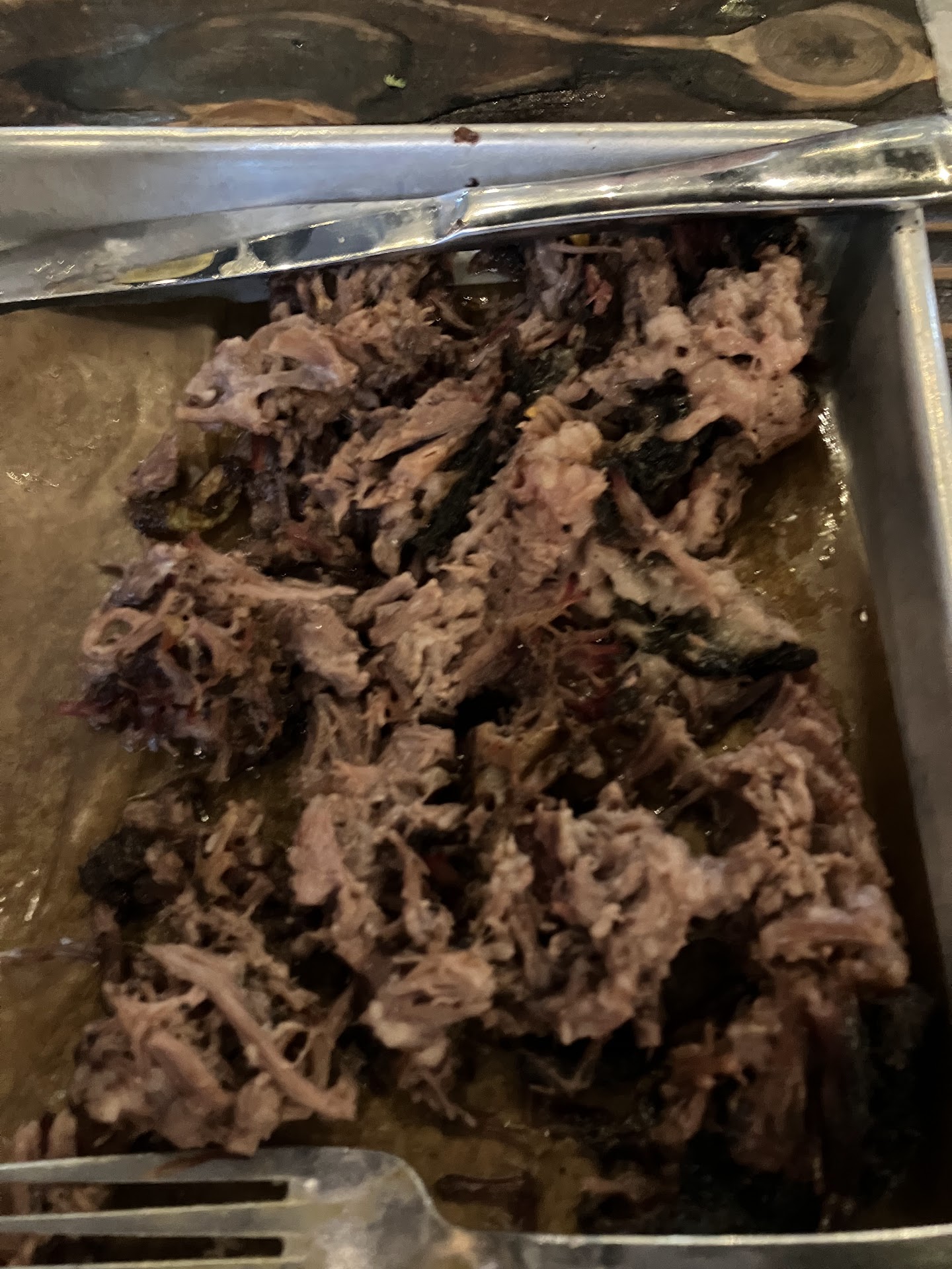 EntrĂ©es: Between our party, we tried three brisket plates, a salad with brisket, a burger, and ribs. Sadly, the brisket was a major letdown. It was served in tiny shredded bits, more resembling pulled pork in appearance and textureâno slices, no bark, no flavor. One of our plates was mostly fat. My wife and I barely touched ours. When the manager asked how things were and I mentioned the brisket looked like pulled pork, he admitted it did, shrugged, and said, ânew cook.â That response honestly said it all.