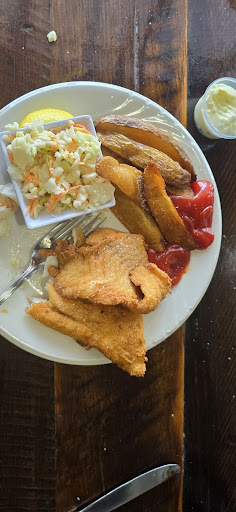 Read moreMy wife and I were passing through town around lunchtime, and wanted to sample the local cuisine. We stopped in here hoping for a good spot. Wow. We wanted to try a few things, so we ordered the seafood platter, as you do. $25 later, they brought out a plate (not platter) of which they should have been ashamed. I asked our waitress with some confusion if this was a lunch portion. She replied âno, thatâs the full size platter. Seafood is expensive.â She said with a straight face, âYou have four shrimp, four scallops, a crab cake, a fish fillet, and some steak fries.â So our âplatterâ netted us each two shrimp, two scallops, a half a fish fillet, half a crab cake, and about three unseasoned potato wedges. And should that sound like a lot to you, rest assured that our daughterâs $5 chicken finger plate had at least as much food as our âplatterâ did. At the end, they charged us an extra dollar for sharing our meal. I would not have been surprised if they had concluded the affair by stealing our wallets and chasing us out of the place with bullwhips. I would have taken a picture, but Apple hasnât yet provided us with a microscope feature.