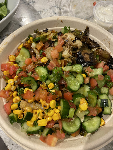 Read moreThis is a nice little healthy spot in the middle of a shopping plaza with whole foods. Very convenient! There is a seating area outside, but very minimal shade and it's quite hot in the parking lot. Inside has plenty of seating in the air conditioning, although everything from the tables to the doors is pretty filthy looking (in all fairness I went at 7:00 p.m. so maybe they just had their dinner rush). I wanted to try a bit of everything so I did a build your own bowl and got both the steak and the grilled chicken. The meat is really not seasoned enough, and the steak is cut into very tiny pieces. The rice was well cooked, but they were out of multiple toppings like corn, pickled onions, and romaine lettuce. I will say that the one extremely positive thing I have to say about this place is that all of their dips and sauces are phenomenal. I think that's what saves the place to be honest. I'd go back just for the sauces. I also got a blueberry lemonade which was delicious. $24 for a bowl and a lemonade, not horrible pricing considering I got two choices of protein. I'd say it's worth the money, they just need to hire a staff member that's dedicated to cleaning, and do better with not running out of some of the...