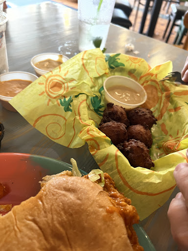Read moreWe arrived around 730 to the restaurant and we were able to find a table immediately for all 5 of us. We sat seemingly unnoticed for about 10 minutes and our waitress finally greeted us, she was pleasant. We ordered our drinks and 2 appetizers, the half pound peel and eat shrimp and the loaded nachos. The shrimp were so cold they were on the verge of frozen, but the nachos were decent, no meat, only black beans. We waited 20 minutes for refills on 3 drinks. Our waitress came over approx 30 minutes into waiting on our food and said the kitchen was backed up, however, 3 other tables that were seated after us with a different waiter had food out, which lead me to believe she forgot to put in our order. The ham and cheese I got was pressed but not hot, the cheese was not melted, buffalo chicken sandwich was ok, burger was just ok, my husband ordered chicken tenders and they were the flat, breaded kind that are obviously frozen. My mom got the grouper sandwich, which, they were "trying out as a special" and it was not good, 5 little pieces of grouper bites with waaay too much bread! There was a woman behind us waiting on her shrimp quesadilla, to-go, same waitress, and she sat there for 30 minutes. Aside from the underwhelming food, the environment is so loud, it was difficult to hear the people at my own table, we even did a little experiment and turned the volume on our phones to the highest setting to see if we could hear them.... We couldn't. I know a restaurant can not necessarily control the volume of the patrons, but when I tell you there were 2 tables in particular that were together, probably 15 people in total, literally yelling, they should have been addressed. Very disappointed and will not...