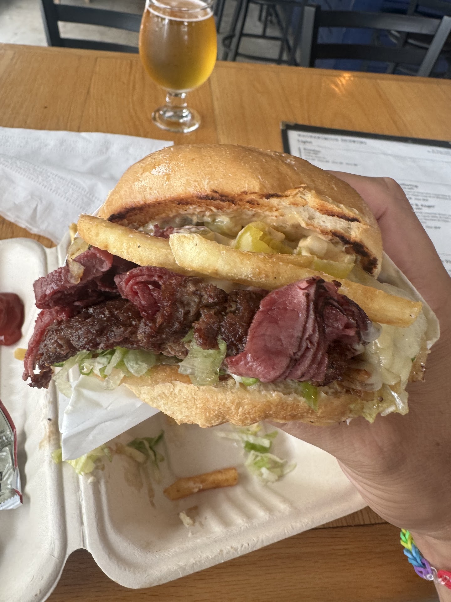 Read moreMy husband and I were looking for a quick place to grab a smash burger on a Friday night. This place had good reviews on google reviews so we decided to try it. We were pleasantly surprised with the atmosphere of the place, a newly build brewery with reggae music and chill vibe. The gentlemen that took our order had a good attitude and recommended the Oklahoma and the Bacon Blue burgers. They were so amazing we are already thinking of next time we will come to eat these burgers. This place deserves to be so crowded all the time. A...