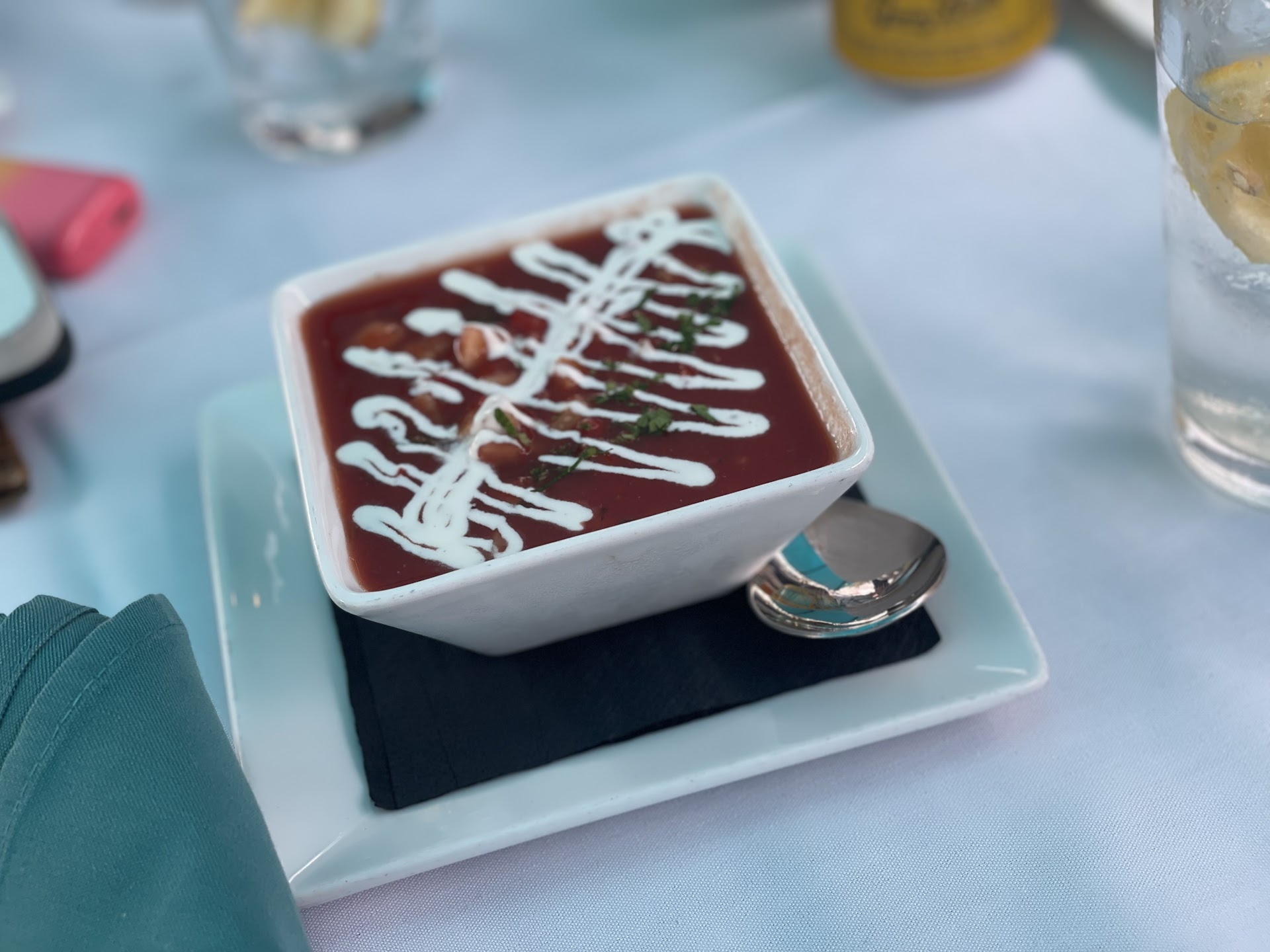 Our server Timothy was amazing and proactive to my needs. I will ask for his service upon arrival next time. He was very polite and set proper expectations. I enjoyed the beers in a chilled glass. My table decided to order from the lunch menu. We were able to pick one appetizer or dessert. The app. for today was the Gazpacho or Thai chili Tuna. The dessert available today was citrus olive oil cake or vanilla bean crème brulee. One entrée shrimp po’boy with double fried French fries, blackened shrimp salad, coriander crusted salmon. Also, they offer house wine as well.