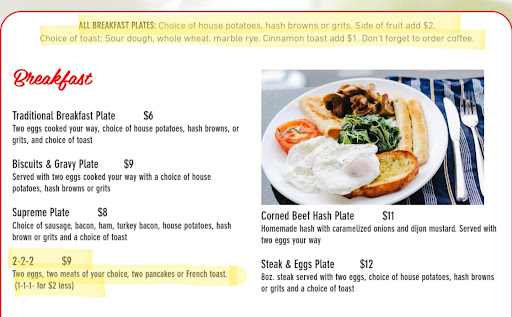 We visited this morning for breakfast. As we entered we were semi greeted by the server who was strictly business. She was not friendly by any stretch of the imagination. Being friendly is key in the restaurant business. After we were seated we felt like we were not welcome. My husband and I ordered the Supreme Breakfast. Itâs the standard southern breakfast, as we are both southerners. Eggs, grits, bacon and toast. When the plates arrived I smelled garlic. If you are use to southern grits, you will be disappointed, as they put garlic in their grits. I asked the server if they put garlic in their grits. She immediately responded NO. I told her if thereâs not suppose to be garlic in the grits someone needs to taste what they are serving in the kitchen because thereâs obviously garlic in the grits and quite a bit of it. She argued that there wasnât. She left and brought out my to go drink and told me that there IS garlic in the grits. She checked with the kitchen. She said sheâs never eaten grits in her life, but she asked and they do put garlic in them. She took my plate which had all of my eggs left and half of my bowl of grits and never asked if everything was ok or if I wanted anything else. I didnât, but it would have been nice for her to be concerned. She obviously wasnât. We wonât be going back because we didnât feel welcome at all. She has a strong accent, so I know sheâs not originally from the US and she obviously knows the mechanics of her job. Iâm glad people are working, but just a smile or friendly gesture would go a long long way. PS: Never put garlic in...