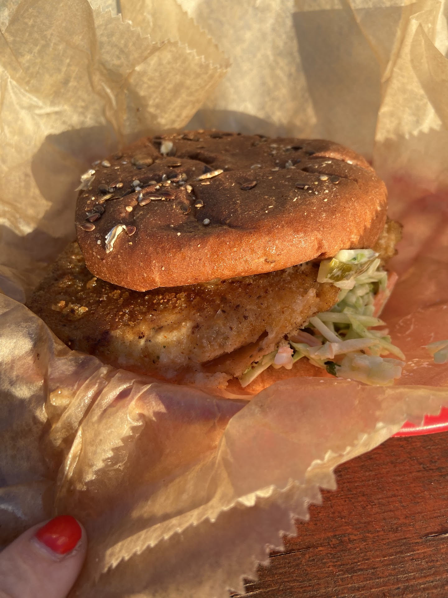 Really cute place with a beachy vibe. I've only eaten here twice, but the food was fresh and delicious. I got Mediterranean Vacation during my first visit. It was really tasty and fresh. The portion sizes are not large. It is enough food, plus it's nourishing, but be prepared, you will not get huge hearty meals here. On my second visit, I got the Smashed Chickie sandwich and a side of potato salad. The potato salad was fantastic! The sandwich was also tasty, but it did not seem it was a very good value. I would not get it again for that reason. I can make something similar at home for a lot less $$. Parking is ample but competitive. It can be difficult to find the place the first time. Overall though, I give Fam Kitchen 5 stars for the freshness and quality of the food, the atmosphere, and...