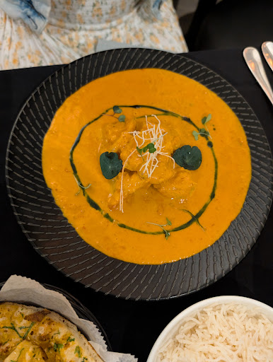 The dal makhani is revelation by way of patience. Black lentils, butter, cream...yes, but somehow elevated. No sprigs or edible flowers, just a humble bowl of darkness with depth. One spoonful in and it’s clear: this is velvet. It’s firelight. The lentils are perfectly tender, the butter folded in like a secret, the spices subtle but resonant. It’s comfort without cliché. You don’t eat it. You cradle it.