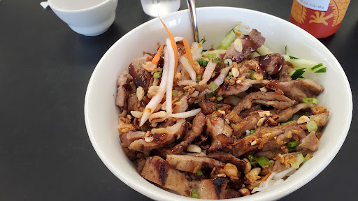 Read moreAbout time I got in here, tired of just driving by the place. It's just before noon on a Friday in July. Only one other table is occupied when I entered but another party followed soon after me and one more right after that. Hey, it ain't "season". The one person working the front is able to handle it. She was very quick to greet everyone and we all got seated at one of nine tables immediately. There is also seating for two at a bar near the register. The decor is confusing me a bit. Yes, we're in Florida so bright colors and pictures of palm trees seems correct. And Vietnam is a tropical country so that works too. But the golf theme in the restroom seems way out of place. And I appreciate some light background music but wasn't expecting light jazz, for some reason. Menu is well laid out with descriptions in Vietnamese & English, many with pictures. I ordered the Bun Thit Nuong instead of my usual pho as I'm not eating hot soup in 95 ° temperatures. Very tasty and quickly delivered. The blend amongst the ingredients, the grilled pork, the cucumber, green onion, the vermicelli, really nice though the pork was a bit tough & chewy. Most entrees are between $12 & $15, appetizers running $5.50 Getting around inside will be no problem for those with wheelchairs or walkers, there is plenty of space...
