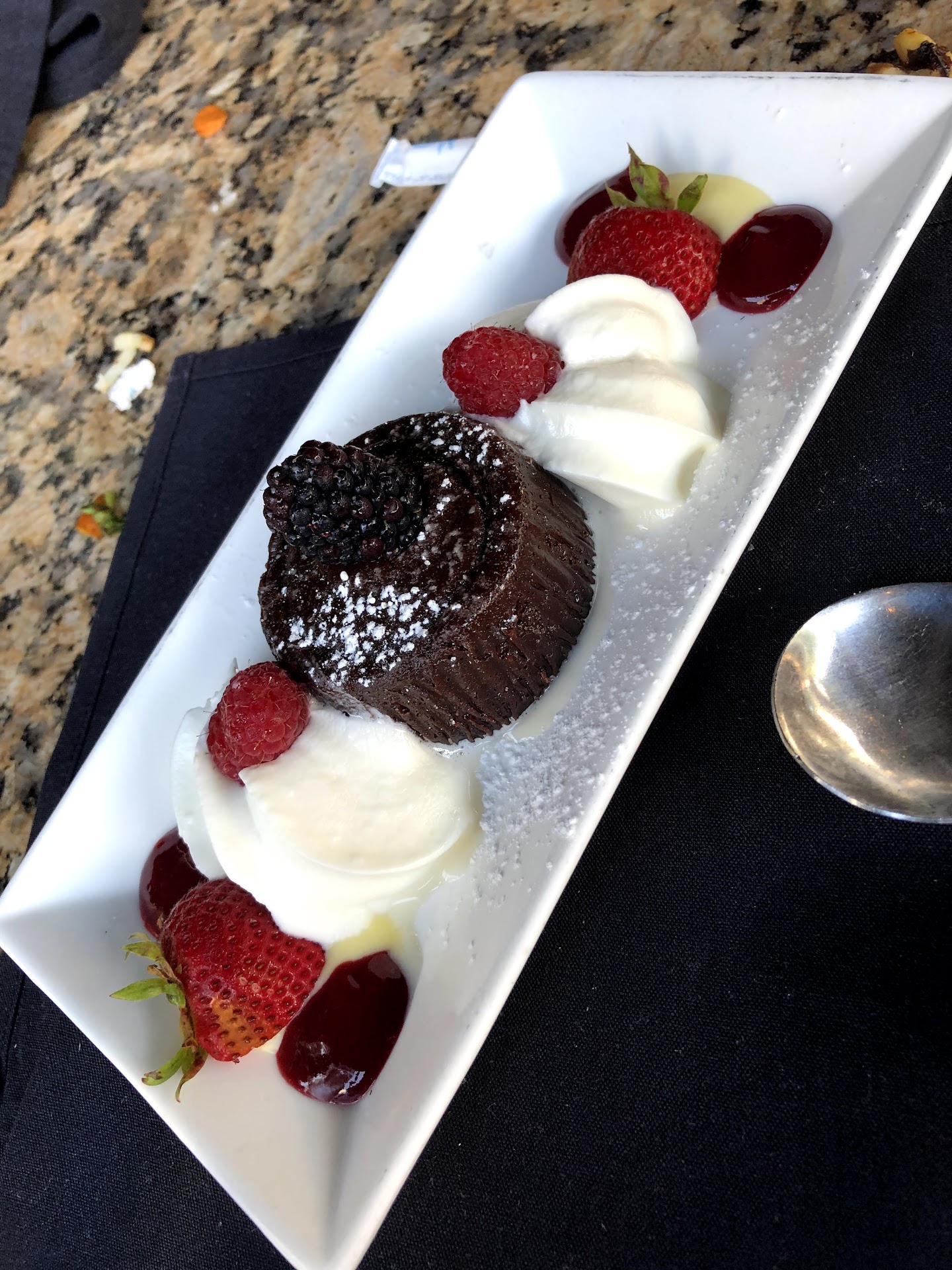 We are great tippers, we are customers who do not demand a lot. We order drinks and desserts, and we usually look to give more than a good tip and freindliness to waitstaff. This woman was rude. She got a tip! But only because of who we are. She was awful! She should absolutely not be working with the public! To add insult to injury, while we were finishing our dessert and drinks, they started vacuuming the bar area adjacent to us with a very loud vacuum.