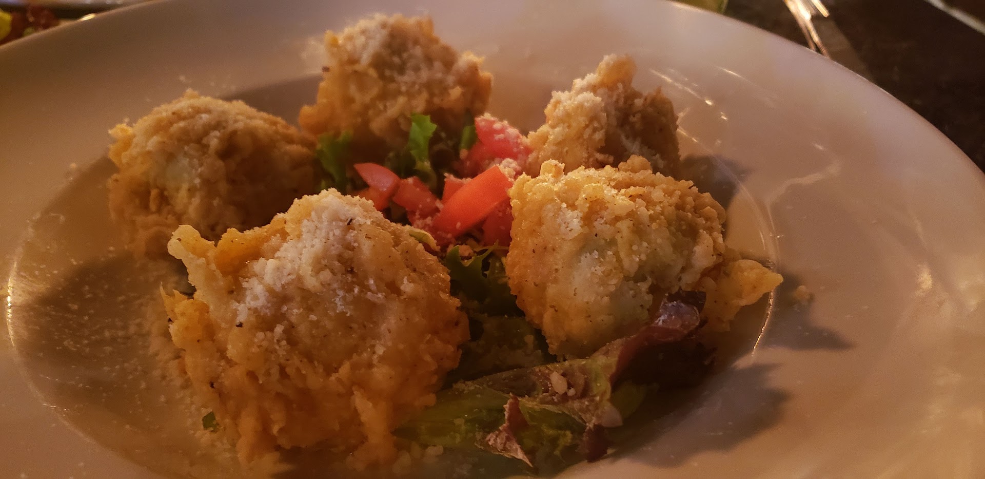 Our food and appetizers came out at the exact same time. Food was not worth the wait. We also never got a refill on the drinks we waited 40 ish minutes for until we hunted down our waiter. I was eating meh food and thirsty. It would have been nice to of had a water or something. I noticed every table had one except us. This makes me think they bring you water once you sat down. We didnât get that luxury.