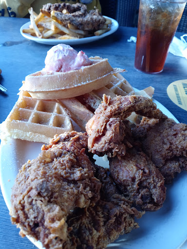 Since we had a long day ahead of us to explore Sarasota, we opted for a generous brunch rich with protein. My mother opted for the fried chicken and waffles, while I enjoyed the classic Bissell Breakfast with scrambled eggs, bacon, hash browns, a biscuit, and replaced the pancakes with perhaps my new all-around favorite breakfast item: the Lemon Blueberry Waffle! It was pure heaven the entirety of our time eating. We were particularly surprised by the house-made fried chicken, which for the price offered a lot of cuts each chock full of meat and little excess oil/grease.