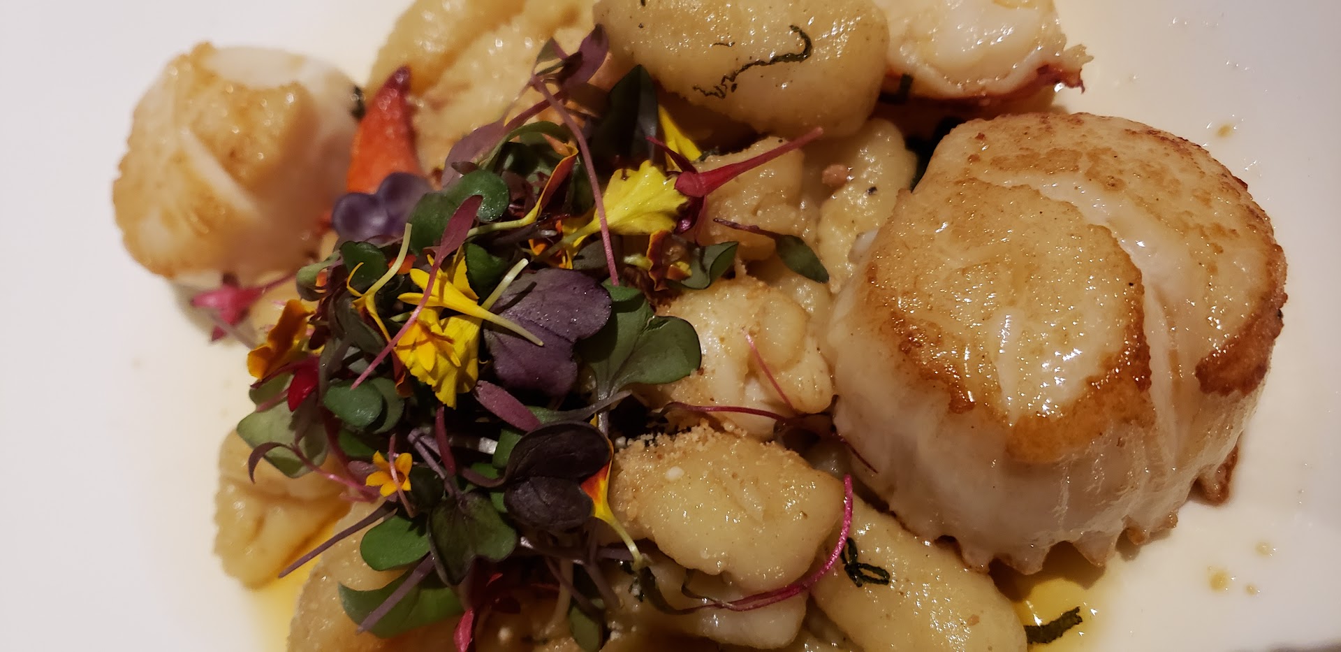 My dinner companion had the sea bass. Now usually, “sea bass” is restaurant code for “white rectangle that tastes like disappointment.” But this was flaky, buttery, oceanic heaven, served over a bed of something green that I assume was good for you, but I was too distracted by the lobster butter sauce, which I would’ve happily poured into a flask and drank the way home.
