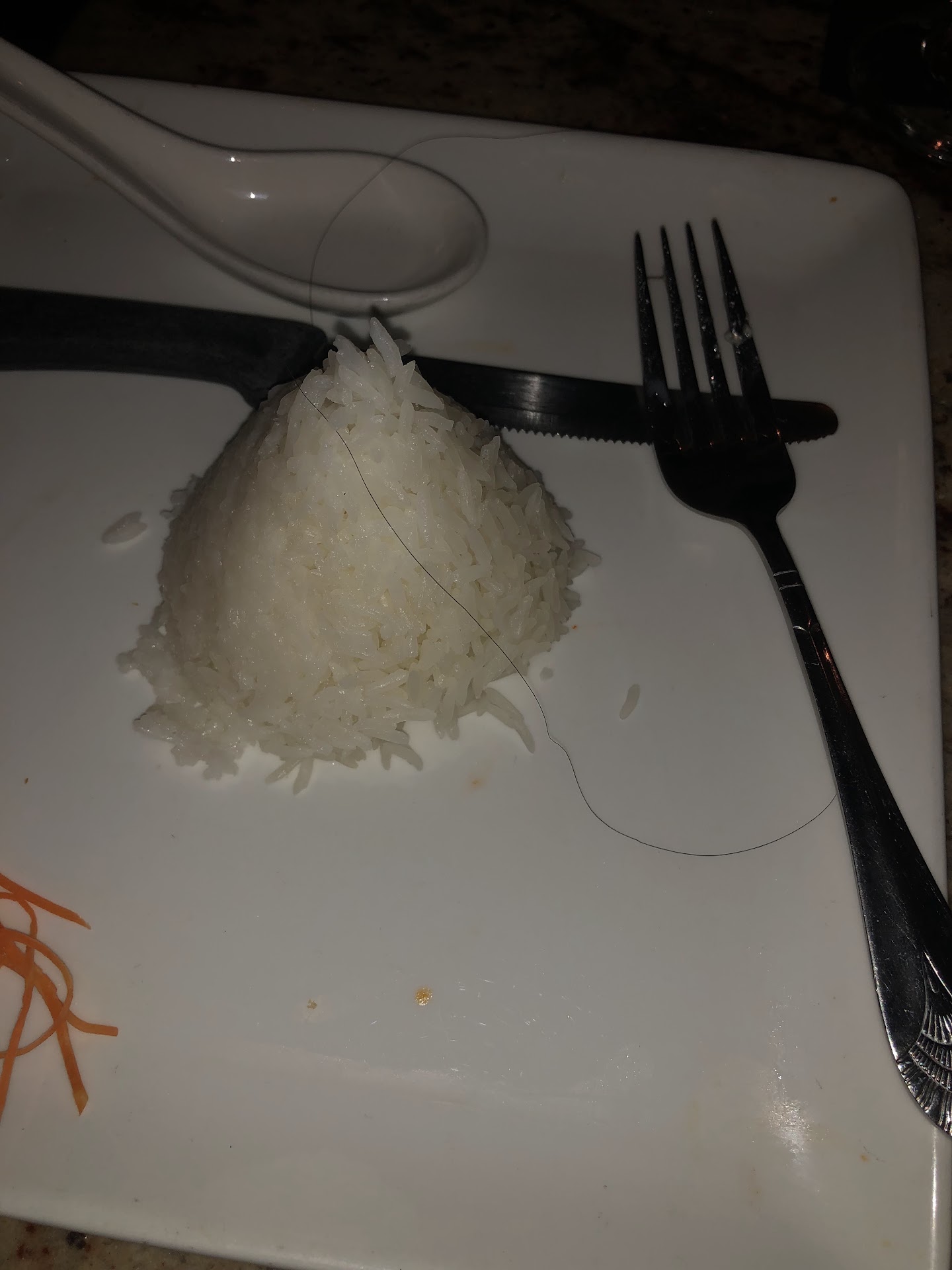 Then comes the grilled chicken (fried rice and veggies). All were barely luke warm. After a couple disappointing bites we asked that it be reheated and they promised to make new. 15 minutes later they brought back the same components with the chicken so burnt that I couldn't cut through it, but the rice and broccoli were now cold. Perhaps this a new style of cuisine, but it doesn't work for me.