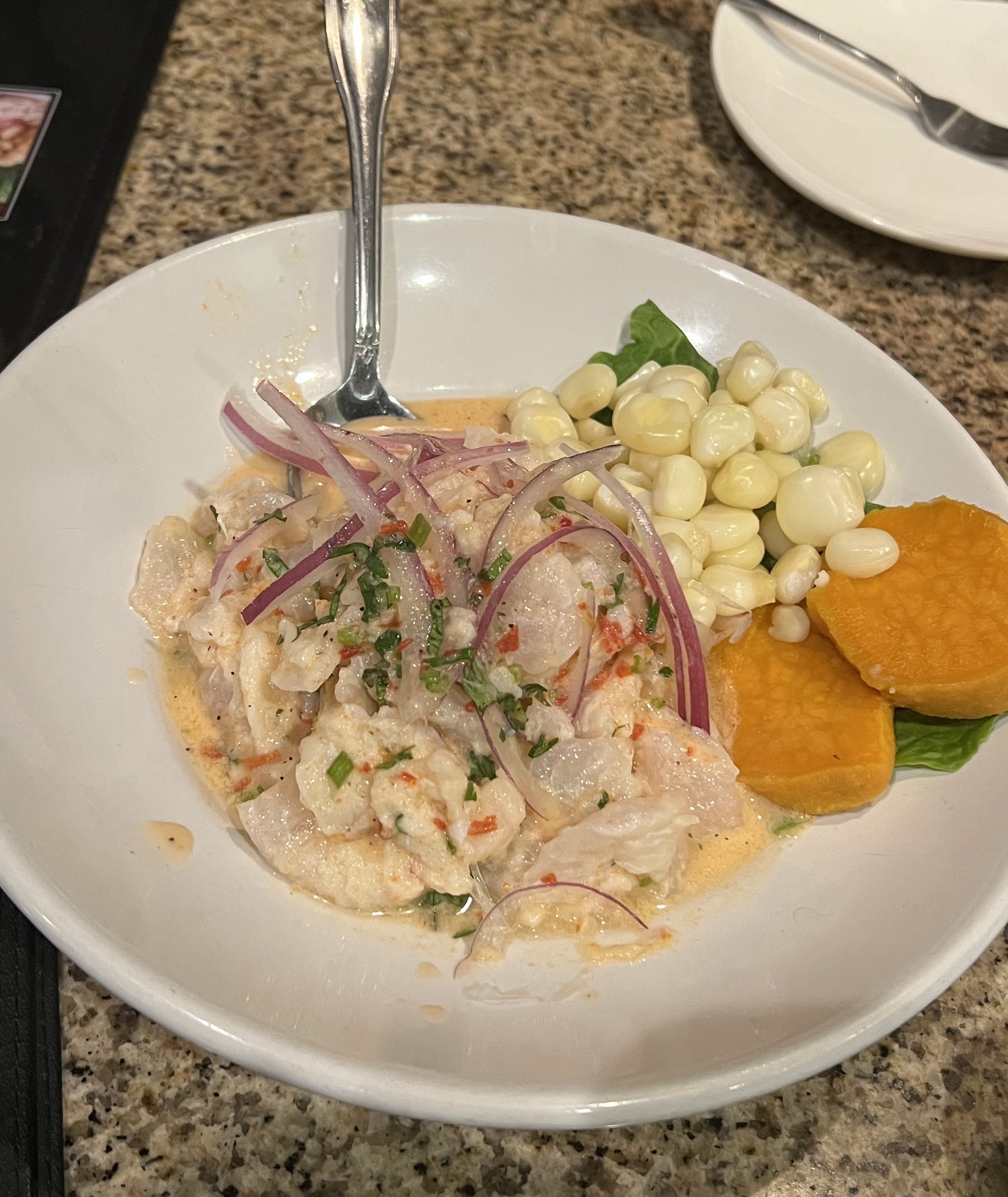We kicked off our culinary journey with a traditional Peruvian beer, which was the perfect refreshing start. The highlight of our appetizers was undoubtedly the Cebiche Mixto, a symphony of fresh seafood marinated in citrus juices, with just the right balance of spice and tanginess.