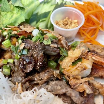 Was in the mood for Pho Cali but they don't belong to any delivery services. Tried Pho-Licious instead via UberEats & so glad I did! It arrived quickly, hot, and so fresh. I had the vermicelli platter with lemongrass beef, shrimp, and chicken. Comes with bean sprouts, mint, scallion, lettuce, carrots, chili oil, peanuts, & that vinegar-y juice (cannot find what it's called!) I mixed it all together and it was phenomenal. I've seen reviews about the lack of meat, but this dish definitely didn't lack any. I had a piece of meat in every bite. I also ordered a side of broth just in case I wanted to make a bit of "pho". I could only eat half of the platter but did have some sips of the broth after and it is also excellent. Great flavor profiles. The platter is in the $20 range but can absolutely be shared with 1 or even 2 more people! I will certainly be back! Stole the picture from Yelp as I was starving and...