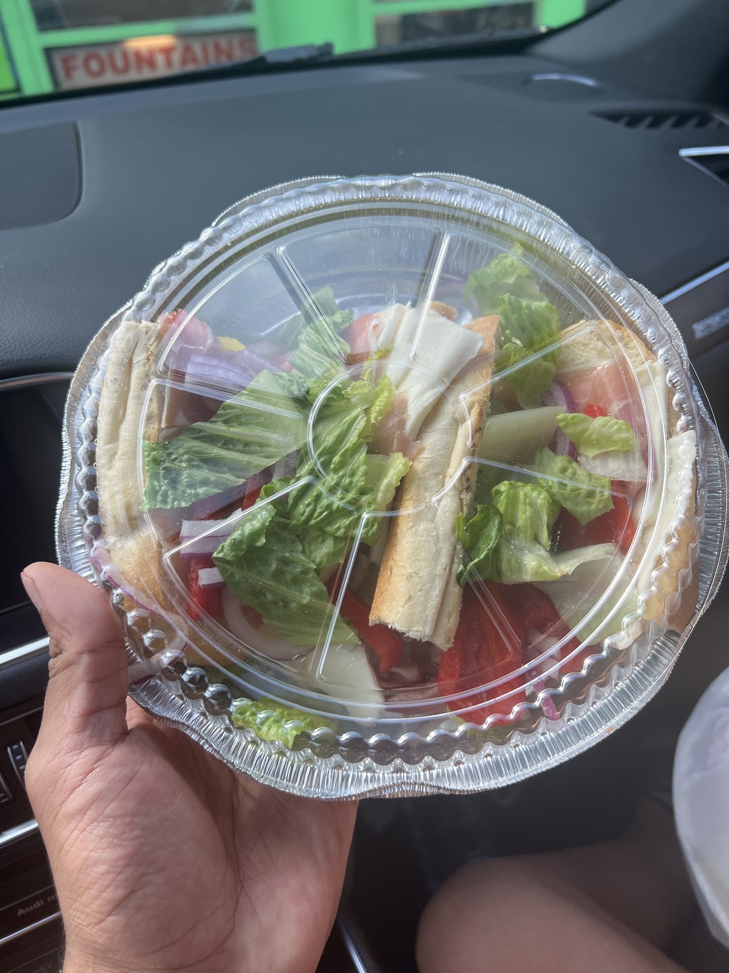 We each had an "included salad", she a Caesar and I a garden. Both were mediocre. Points for the lettuce being a darker green, unlike the iceberg lettuce of many inexpensive Italian restaurants. Tomatoes were not ripe and had no flavor, olives and jalapeno peppers were fine, not much else to the salads.