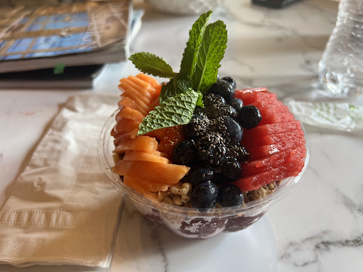 What a hidden gem! Thoroughly impressed. By far, THE BEST açaí bowl I’ve ever had in my life (and I’ve had a lot). So many fresh fruit options. No frozen or processed ingredients (kinda hard to find these days). Almost too pretty to eat…almost. My friend and i shared an açaí bowl and it was more than enough for us as a snack. Our husbands got a few tastes and they were also impressed. Absolutely divine. Layered partly frozen açaí with granola, peanut butter (almond butter also available) chia (several other choices of seed topping as well), drizzled honey, and three choices of the freshest, sweetest, most delicious fruit options. Was around $12 on 9/2 (noted in case this review is read post price-changes). I thought the price was a tad steep until i saw and tasted her creation. The fresh juices were wonderful and refreshing as well. My new fave spot for healthy options in downtown Sarasota. The decor is current and cozy with an industrial yet modern, fresh vibe. We (four of us) sat in a little lounge-type area with a leather sectional, leather chairs, marble topped tables and super cool, edgy light fixtures. There are also several tables and stools set up as well as seating around the juice bar. The employee was friendly and patient and a dang artist of açaí bowls. All our juices and smoothies came with edible decorative accents, adding just the right touch. Food as art! I’ll be...