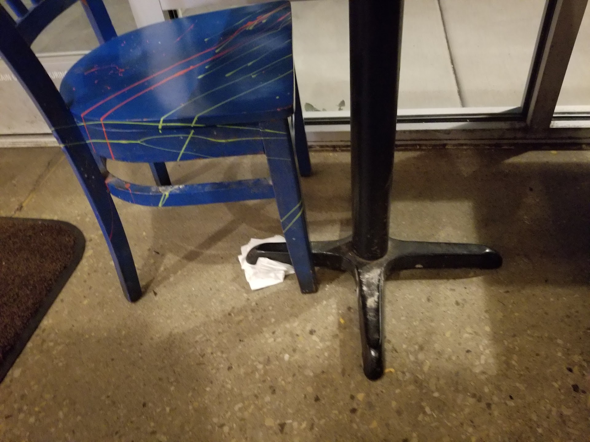 I didn't want to venture to the restrooms which I usually check. I Sorry, folks for a lack of being thorough. Additional notes: I've provided pictures of almost every table being stabilized by stacks of napkins. A simple bulk pack of the screw stabilizers would do wonders here. What a simple and inexpensive fix!! And to think the employees (I hope, and choose to believe based on the quantity of the napkin fix, that it wasn't a consumer!!) were mindful of the consumers being seated at rocky tables speaks to the mindfulness of at least one employee.