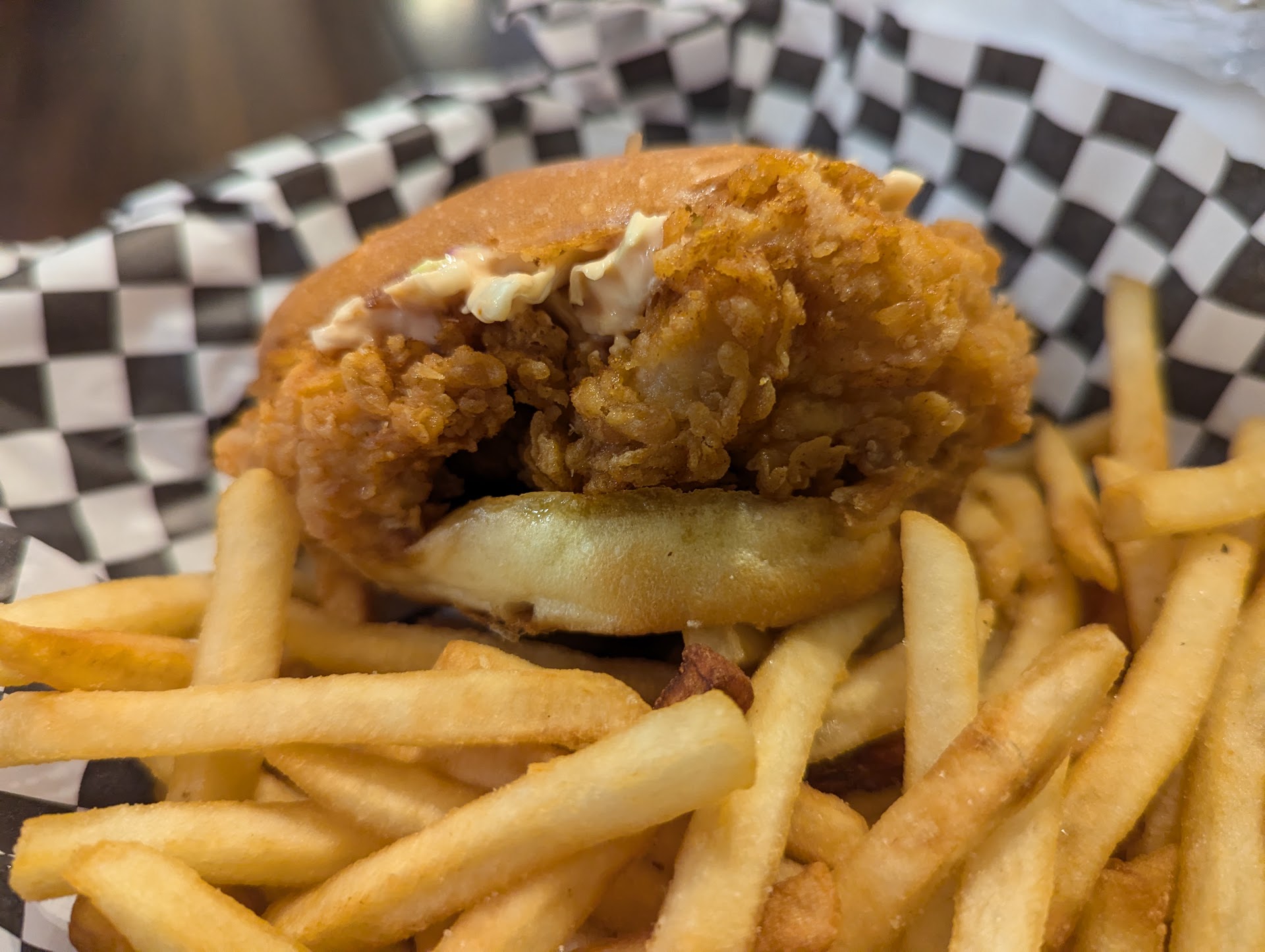 Their spicy sandwich uses a lot of cayenne pepper to deliver the spice, which reminds me of the Nashville hot chicken approach.